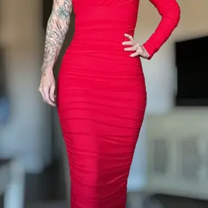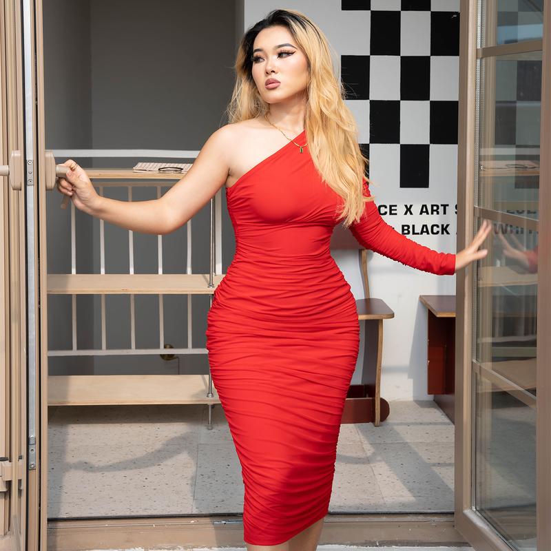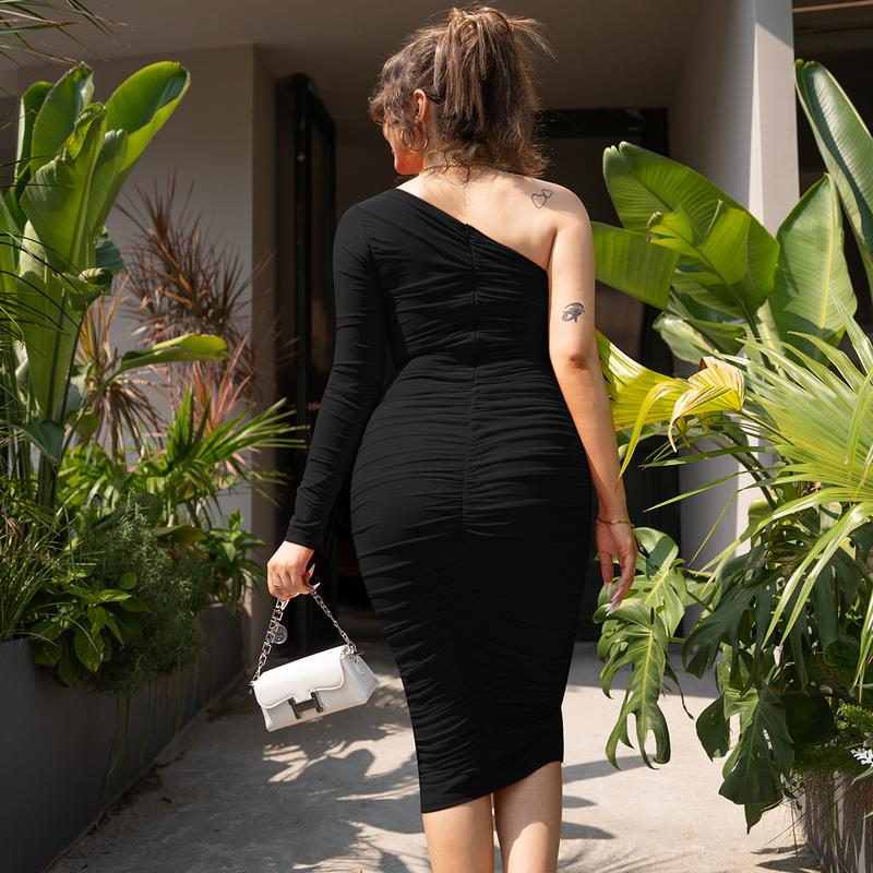·Sexy, elegant one-shoulder, long-sleeve dress.