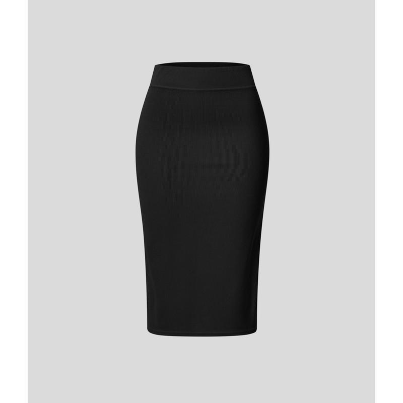 Halara Ribbed High Waisted Split Bodycon Midi Casual Skirt