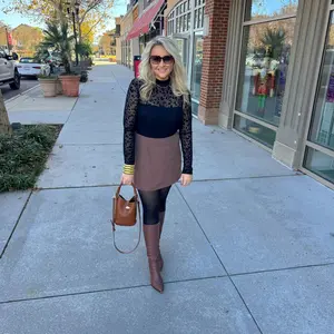This bodysuit features a high neckline and translucent long sleeves. The dual-layer construction with gathered details creates a flattering silhouette. Perfect for elevating basic wardrobe essentials with refined detailing and versatile appeal. Consider sizing up for a relaxed fit.