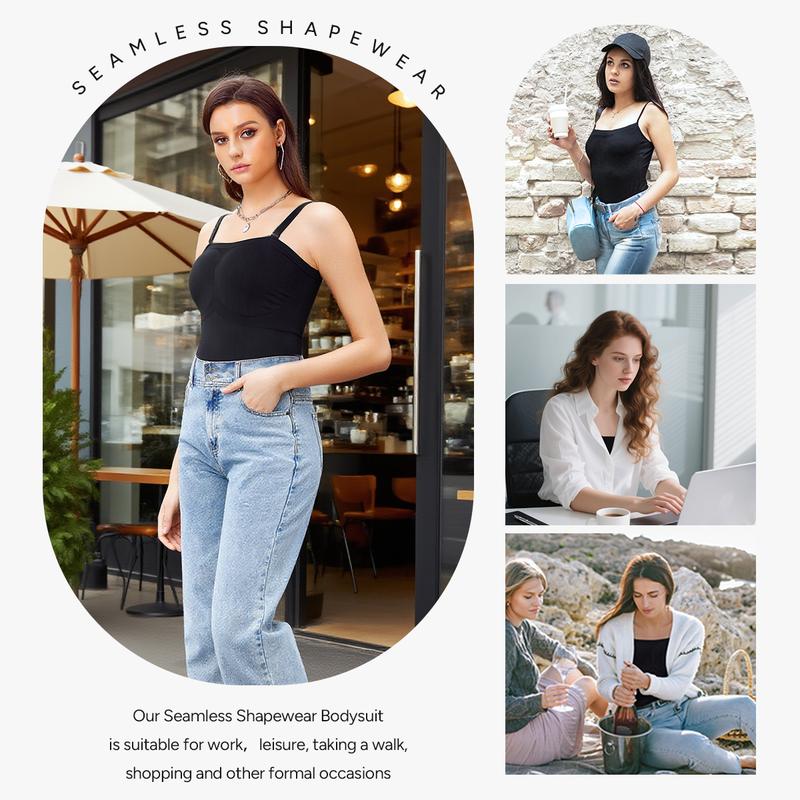 Nebility Women's 2 Piece  Bodysuits for women Seamless Comfortable Shapewear Crew Neck Square Neck Sleeveless Womenswear Basic Compression Black(Upgrade)
