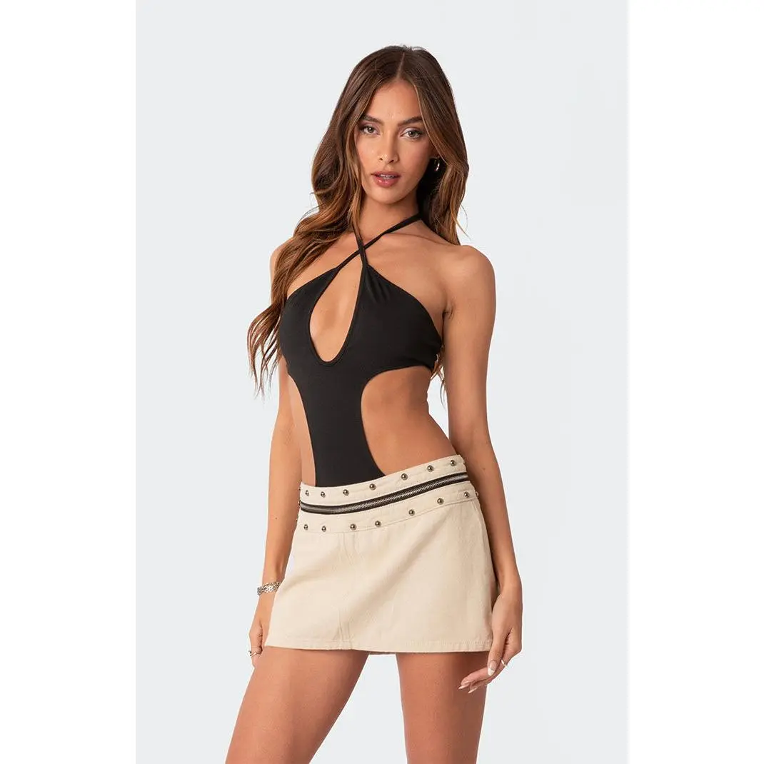 Online Only! This halter bodysuit is the ultimate go-to piece, with its secure fit ensuring it won't come untucked. The cutouts add an unexpected freshness to any outfit.