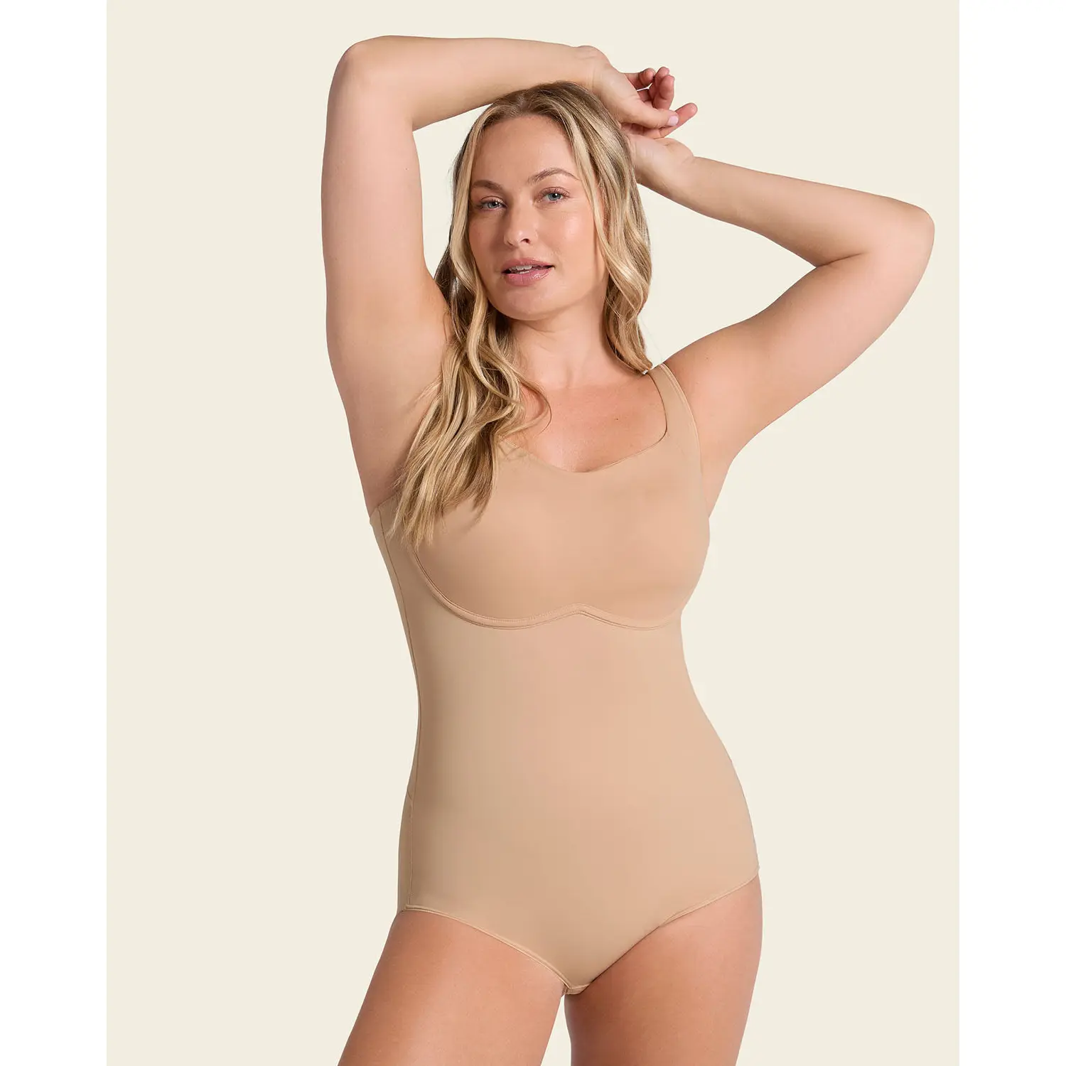 Bodysuit faja DEL MÁS ALLÁ! Soy talla S peso 135 lbs y mido 5’8’’ (es mi favorito)