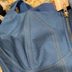 It's not jeans material but Polyester and it's beautiful and well made.