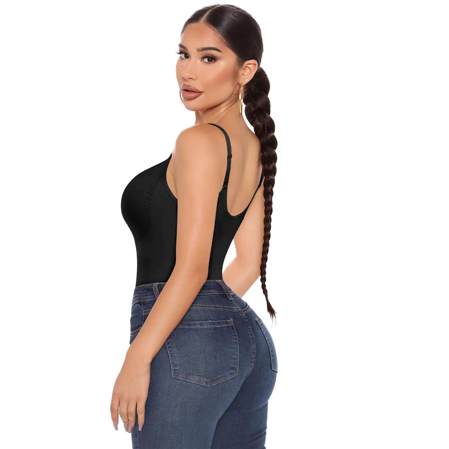 With adjustable straps and a no-compression bra design, this bodysuit fits comfortably across all cup sizes. The full back coverage smooths the upper back, while the snap closure at the crotch ensures easy maneuvering. Enjoy a customized fit that suits your needs.