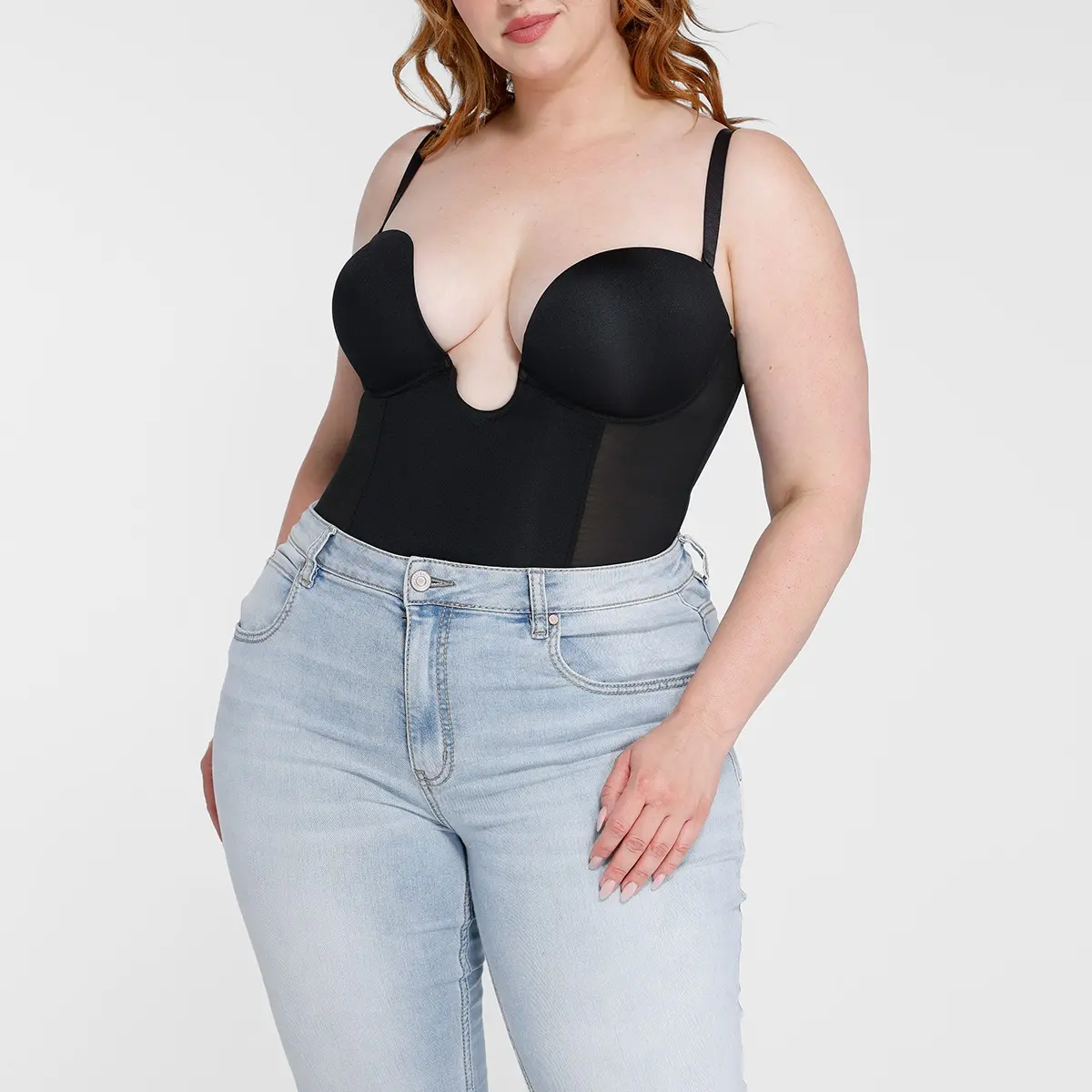 Ready for your close-up? Our Deep Plunge Bodysuit is your secret weapon for confidence and style!#shapellxcurve #Shapellx #shapewear