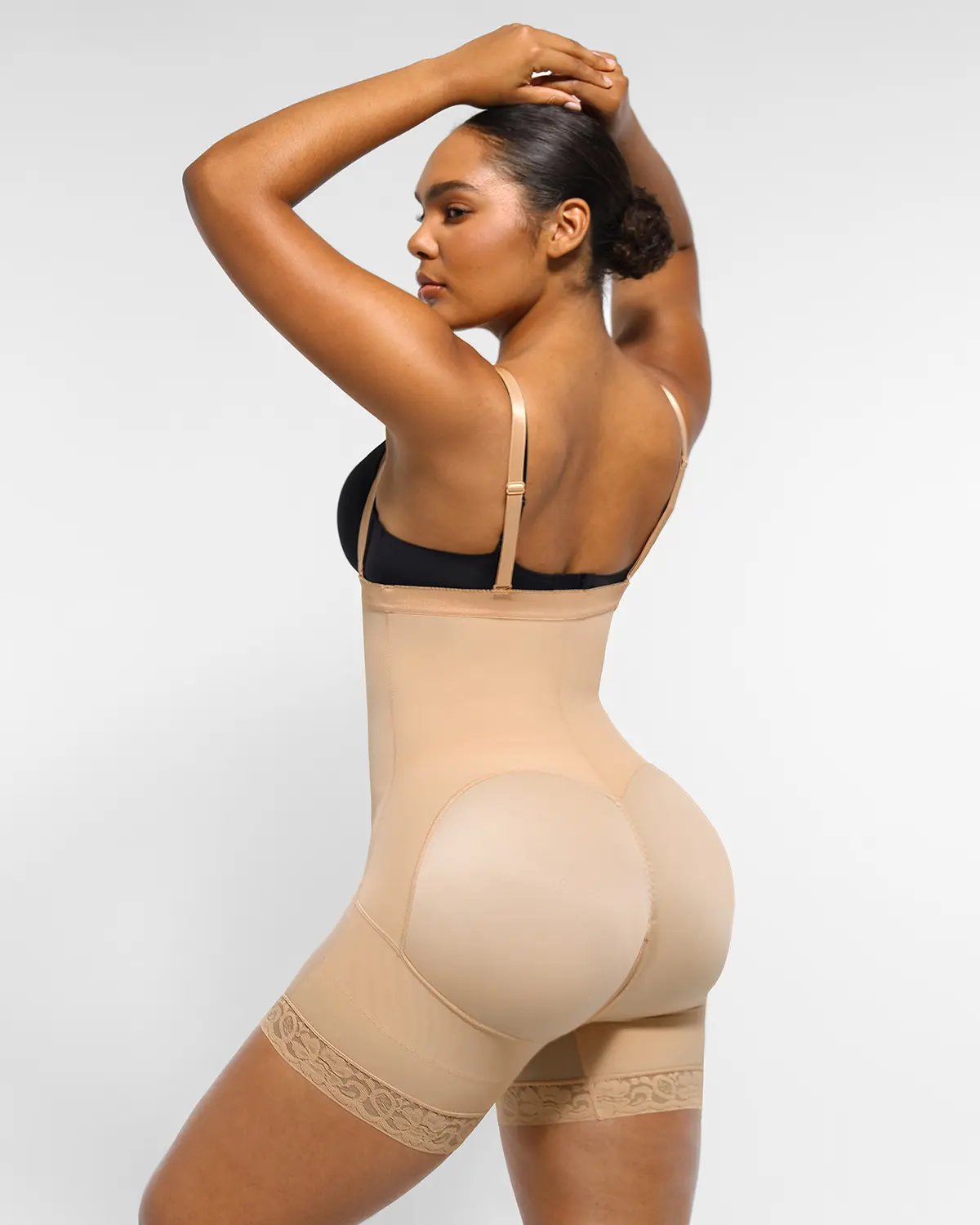 It deff helped the booty; I wish it sucked in a little more in on the belly area. Also, long torso peeps, may not be the best option. It gives me a jump at the top of it on my back where it's compressing the fat lol. I'm still glad I got it.