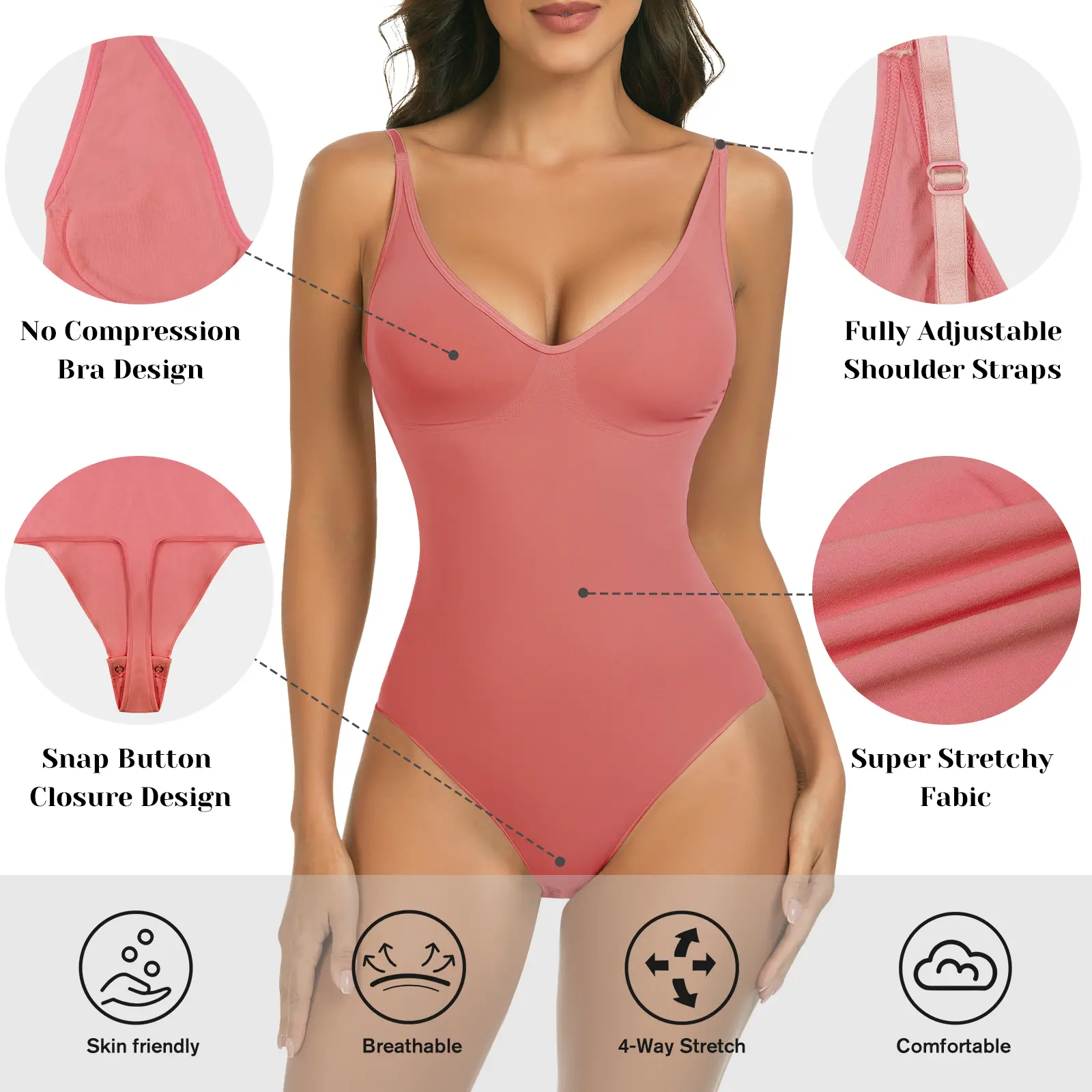 ·【Sexy Deep V-neck Design】: This women's shapewear bodysuits has a classic deep V-neck line style that shows off your charming clavicle.It can better highlight the lines and shapes of your breasts.Snap closure at crotch for easy maneuvering, comfortable to wear all day.