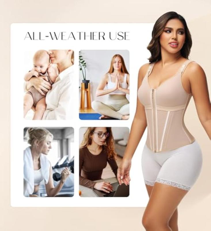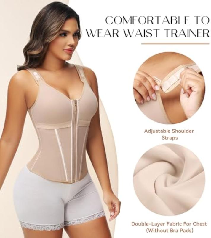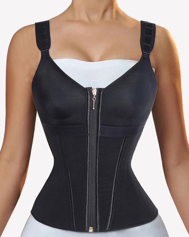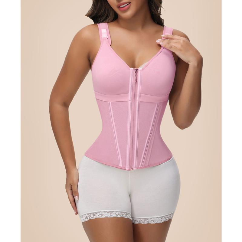 KELLYLEE Women's Zipper Corset with Bra Tummy Control Sport Workout Vest Fajas Colombianas Waist Shapewear Tank Top for Fitness Yoga & Office Wear