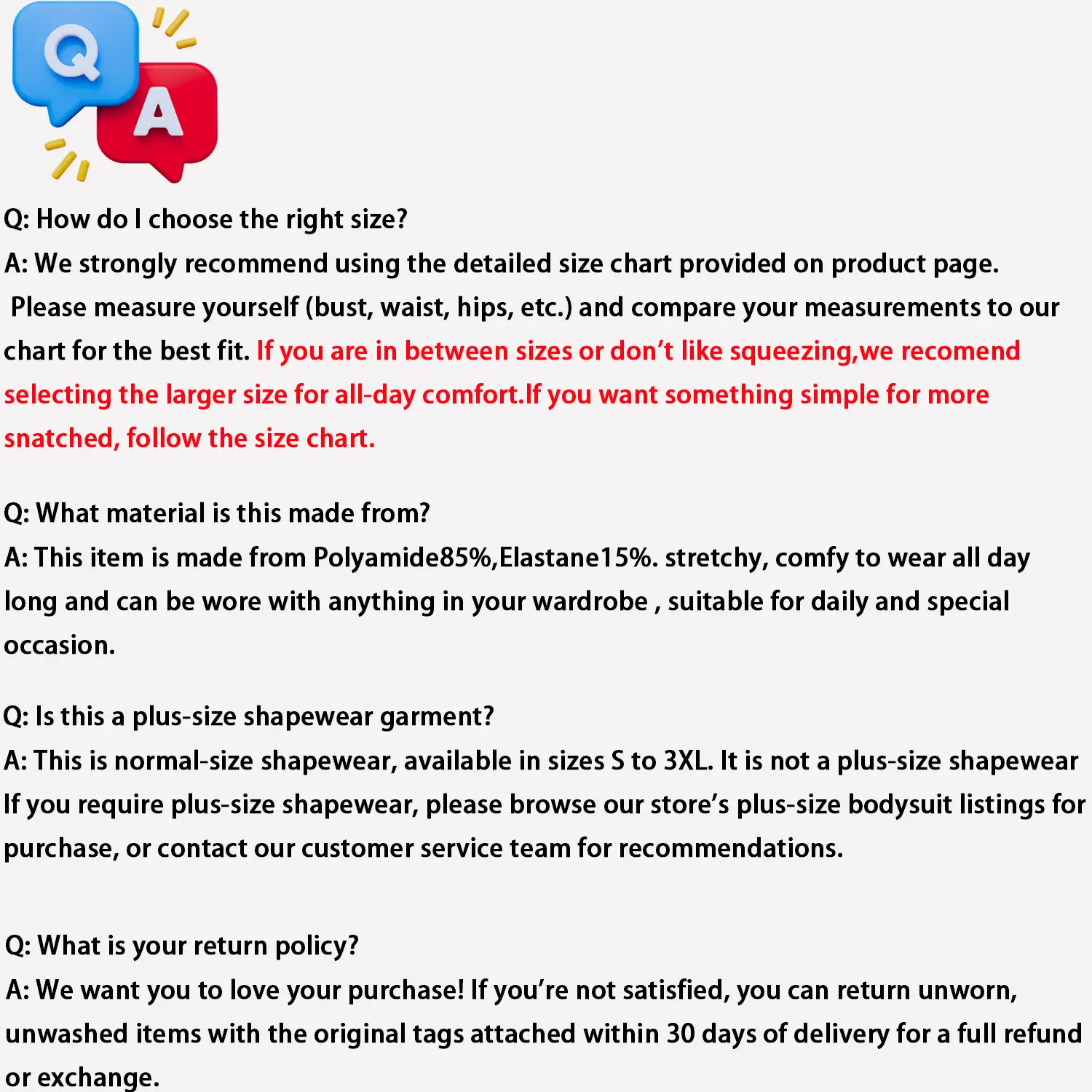 Love the quality of the material. The only thing that prevented me from giving 5 stars is that they are not true to size. I followed the size chart, I'm a 16/18, got XL and they do nothing for me. Wanted them to hold me in just a little but no. Should have went down a size or two.