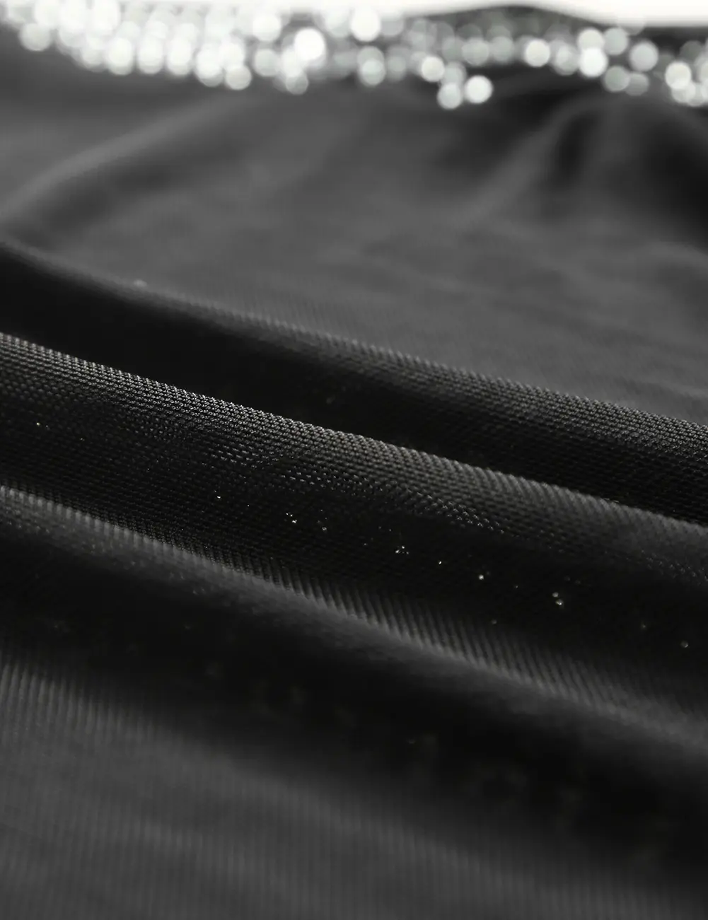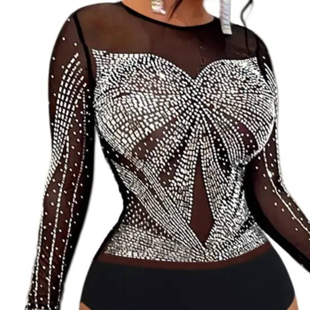 Sexy Body-Suit, con brillantes estilo de diamantes y perlas. Malla transparente de tul con purpurina, cuello redondo y de manga larga. #body #sexy #mujer #halloween @UEOIOW  #tiktokshopbacktoschool