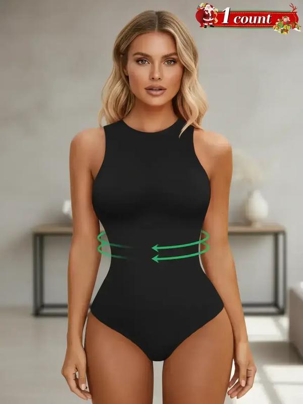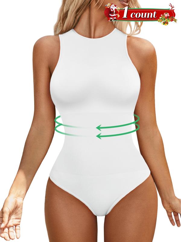 Women's Tummy Control Shapewear Bodysuit, Round Neck Shaper Seamless Sleeveless Racerback Tank Thong Bodysuit