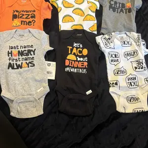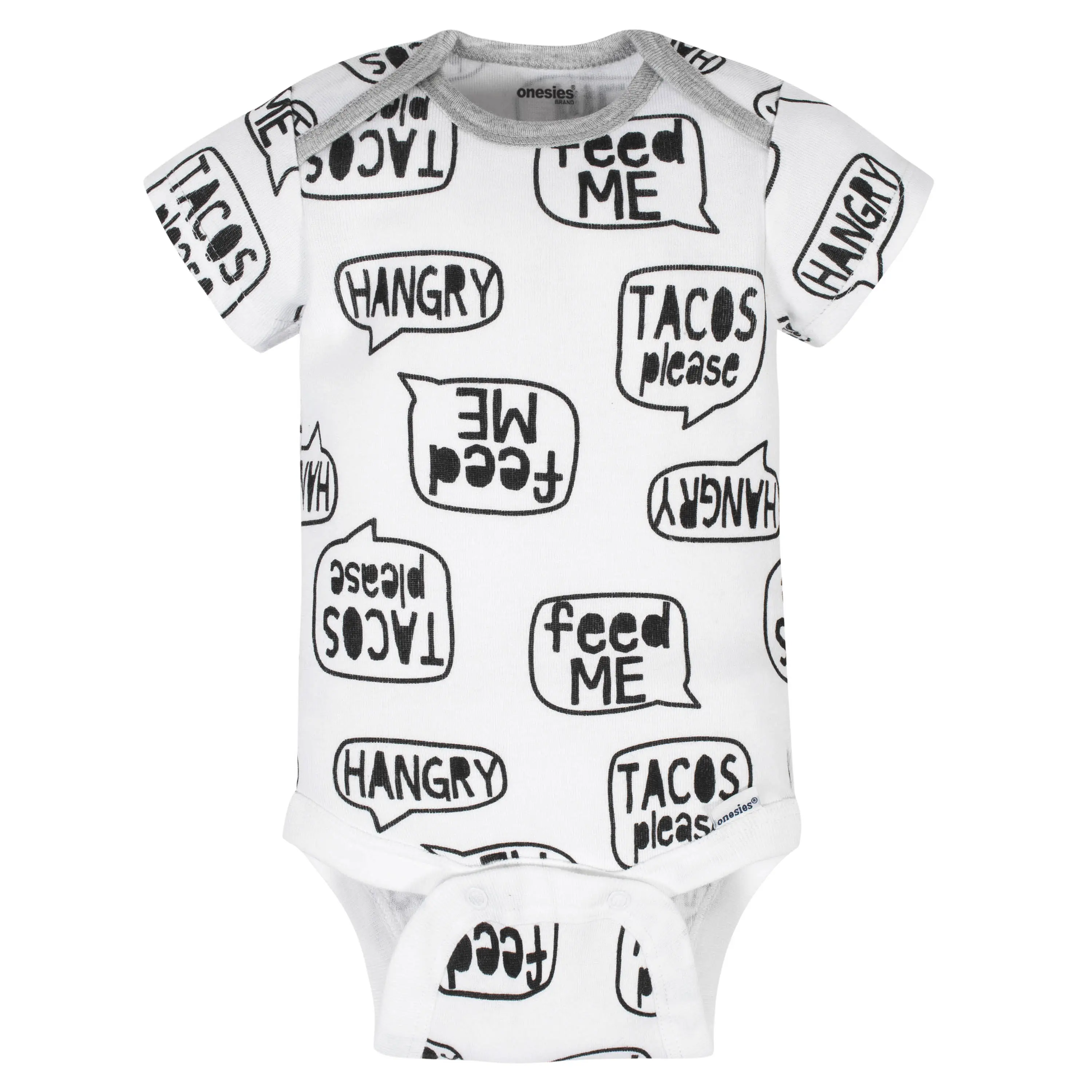 These Onesies® Brand bodysuits are hilarious and adorable! Made with soft cotton rib, they’re super comfy as well. Each baby boy Onesies® Brand bodysuit features an expandable lap shoulder neckline which keeps wardrobe changes easy. The snaps are positioned higher so that diaper changes are too. Baby bodysuits are a necessity for the first year of baby’s life because they’re so versatile. Use them to layer when it’s cold or mix and match them with baby pants, baby socks, baby caps, baby jackets, and baby leggings! Plus, each funny baby Onesies® bodysuit is machine washable. This pack contains eight bodysuits and are made of 100% cotton rib.