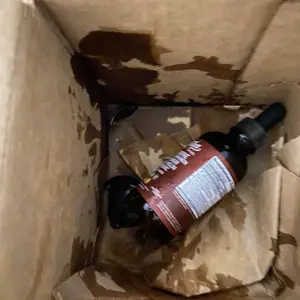 I received box product of one bottle all spilled inside and out box when arrived from postal put in my mailbox ut doesn't look tampered with but it appears wasn't inspected throughly on both bottles one is OK the other spilled all in box what are you planning to do about it?