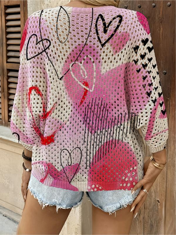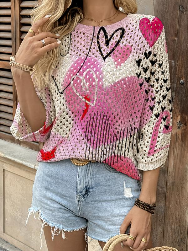 5. Spring and summer, round collar hollow out loose even shoulder sleeve blouse, bat hit color gradient printing multiple love lady knitted blouse, valentine's day holiday wind, casual elegant commuter vest smock, bikini smock, Bohemia resort wind sea smock