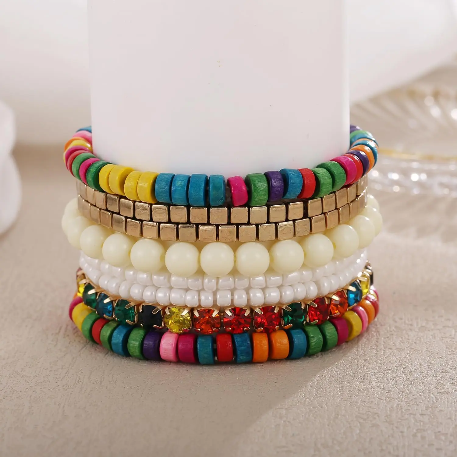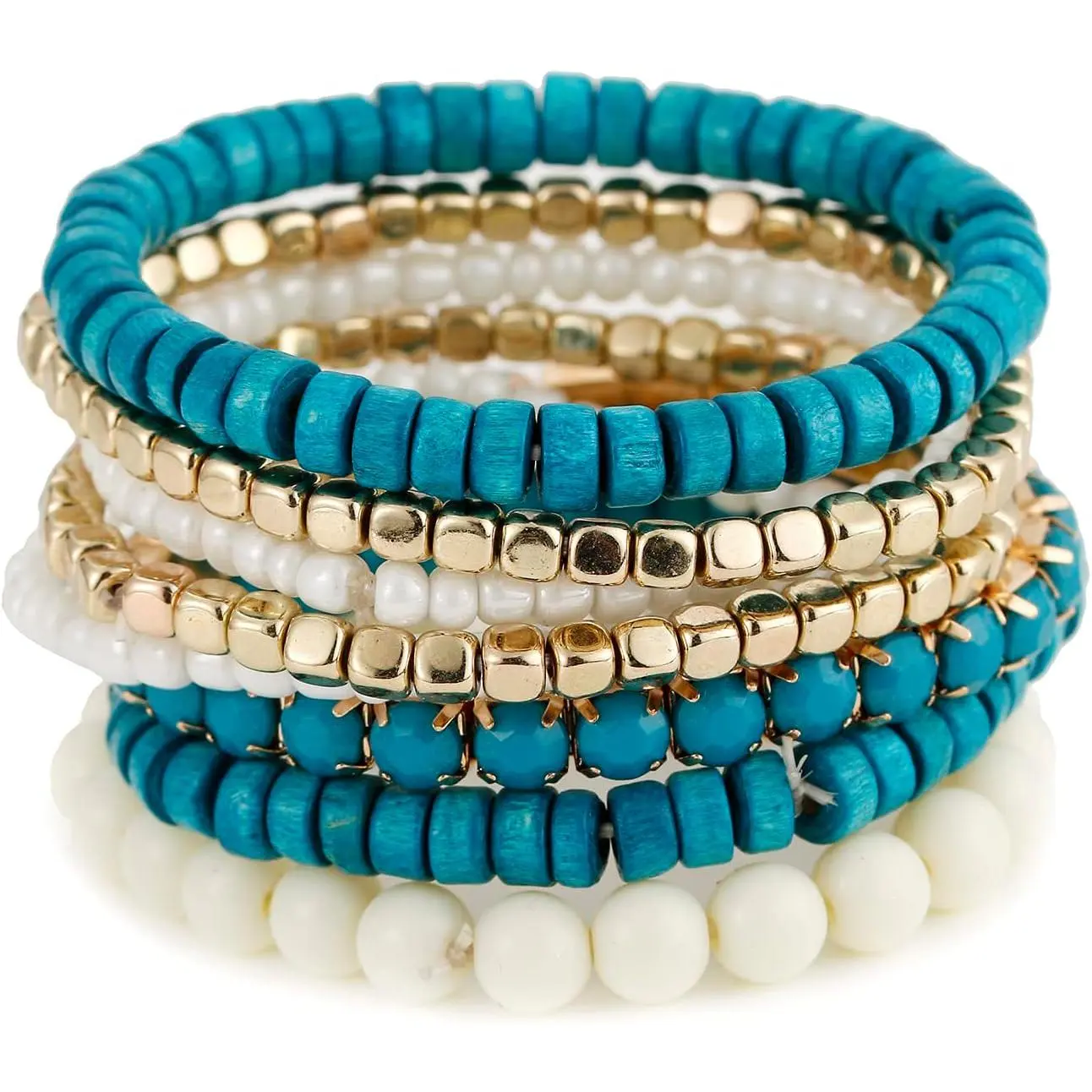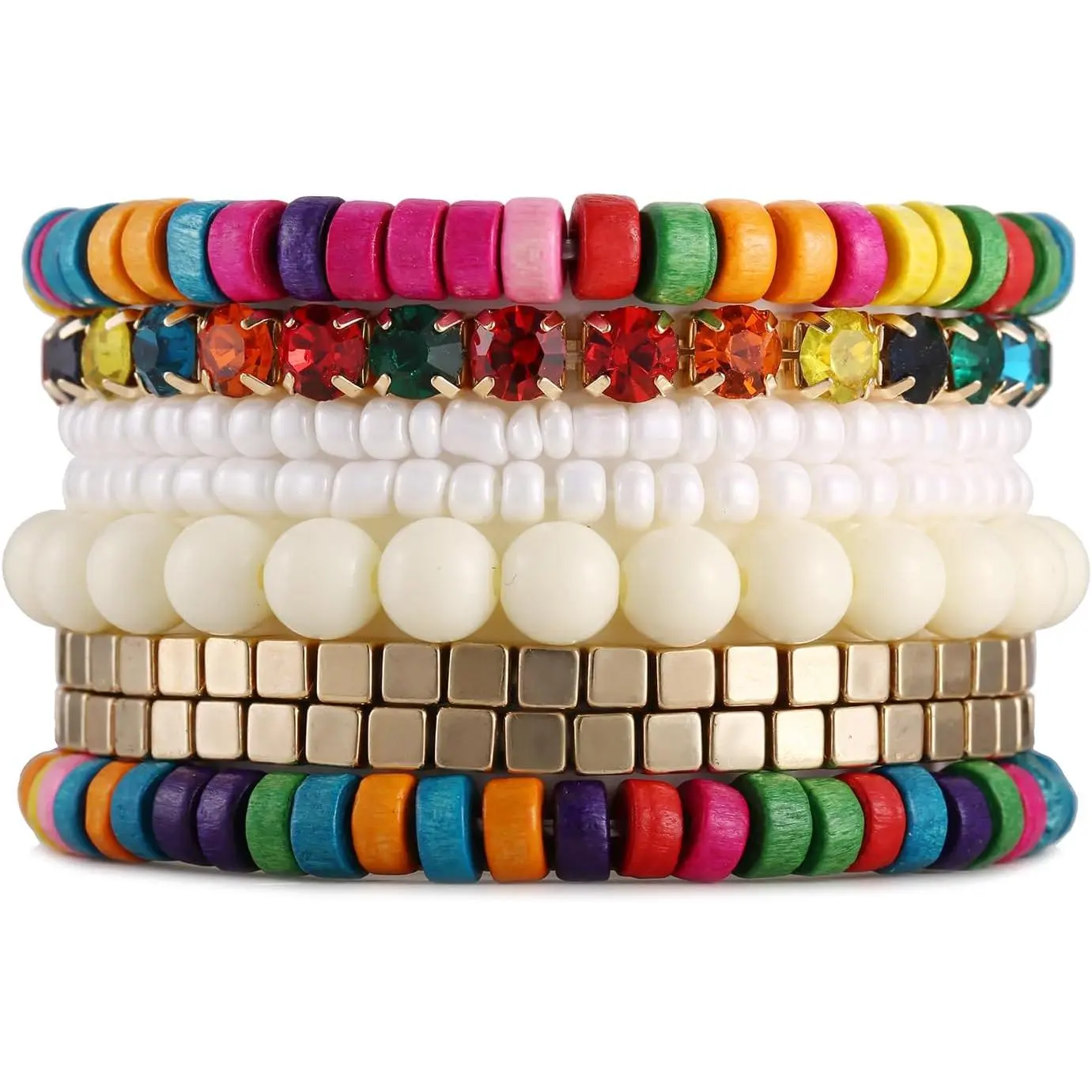 Bohemian Beads Cube Multi Strand Stretch Stackable Bangle Bracelet Set (bl003172)