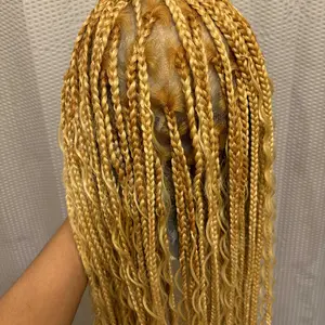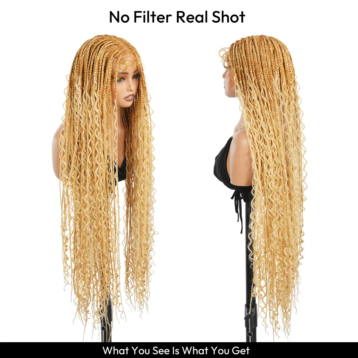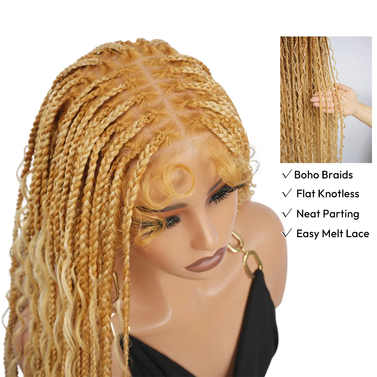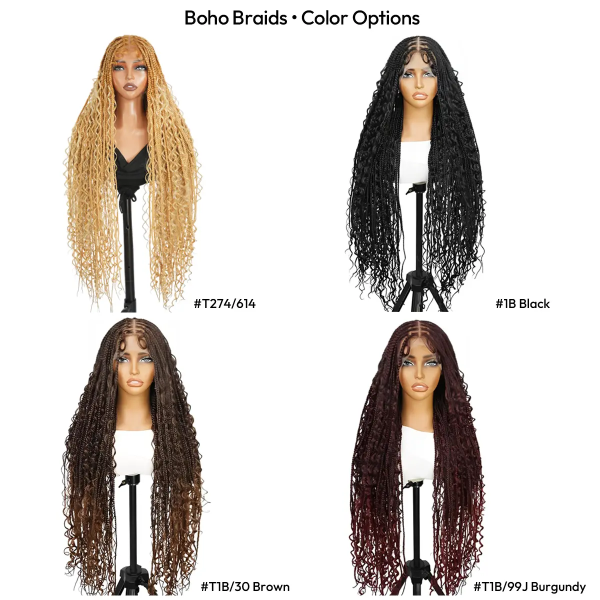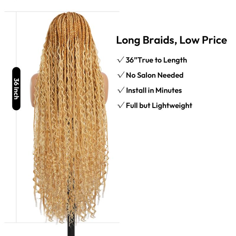 SuperNova #T274/614 36 Inches Full Lace Premium Synthetic Fiber Bohemian Box Braided Wig (Knotless)