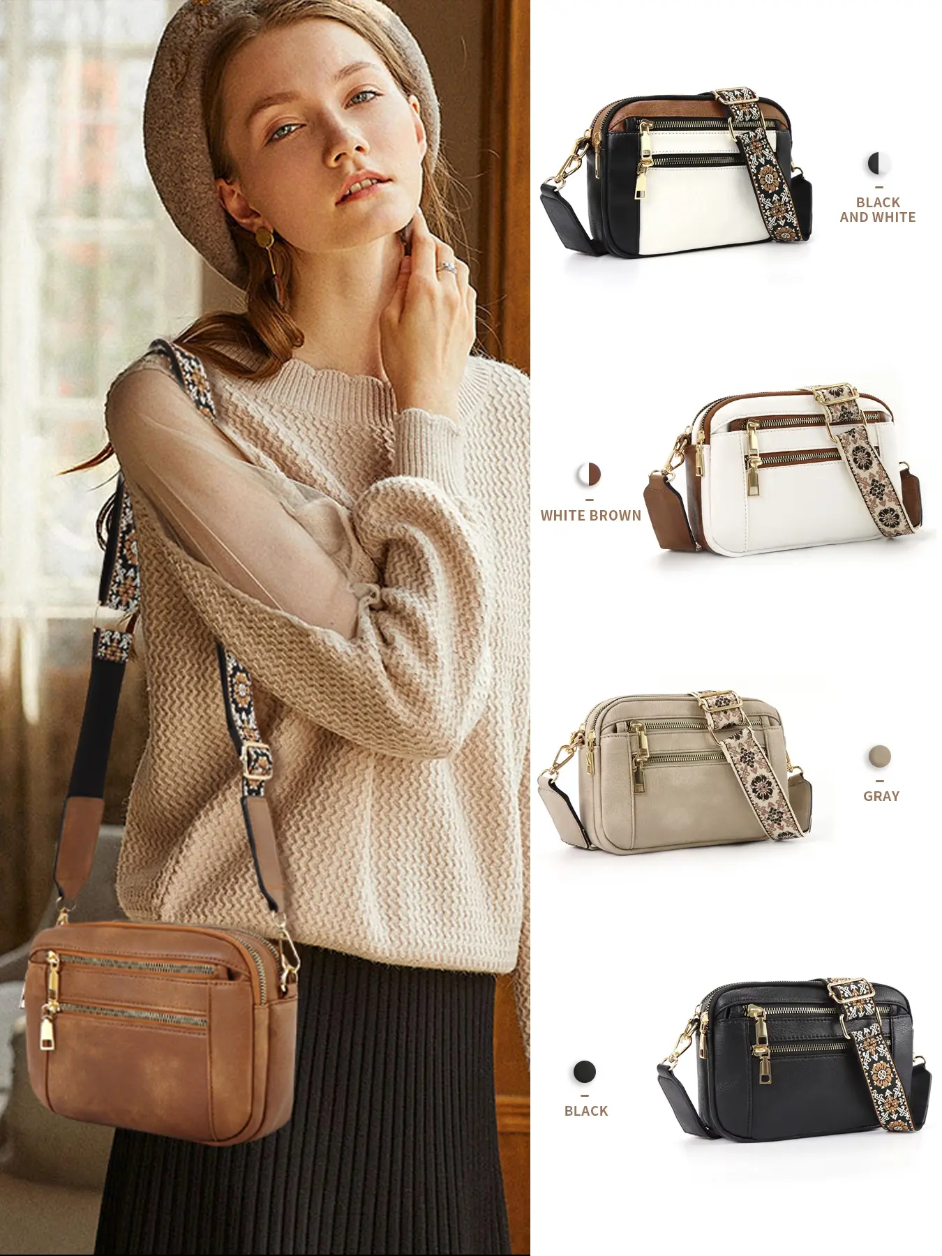 Bohemian Crossbody Purse for Women, Casual Trendy Bag, Small Crossbody Bags Trendy Vegan PU Leather with Adjustable Shoulder Strap, Women's Shoulder Bag, Handbag, Vintage Design, Lightweight & Spacious, Perfect for Daily Use