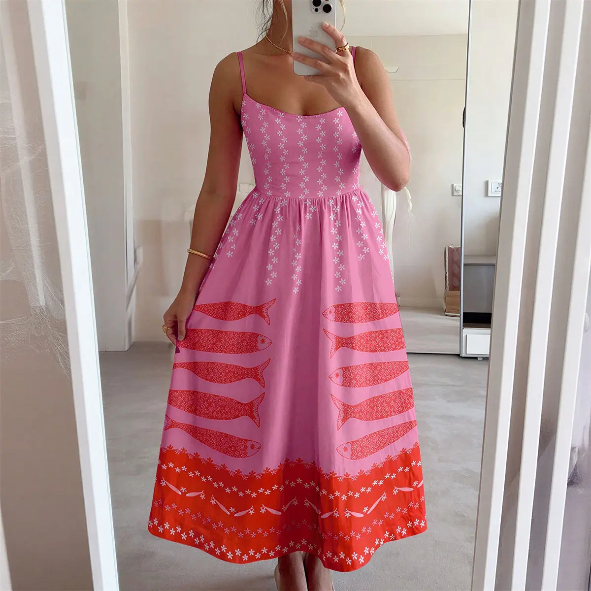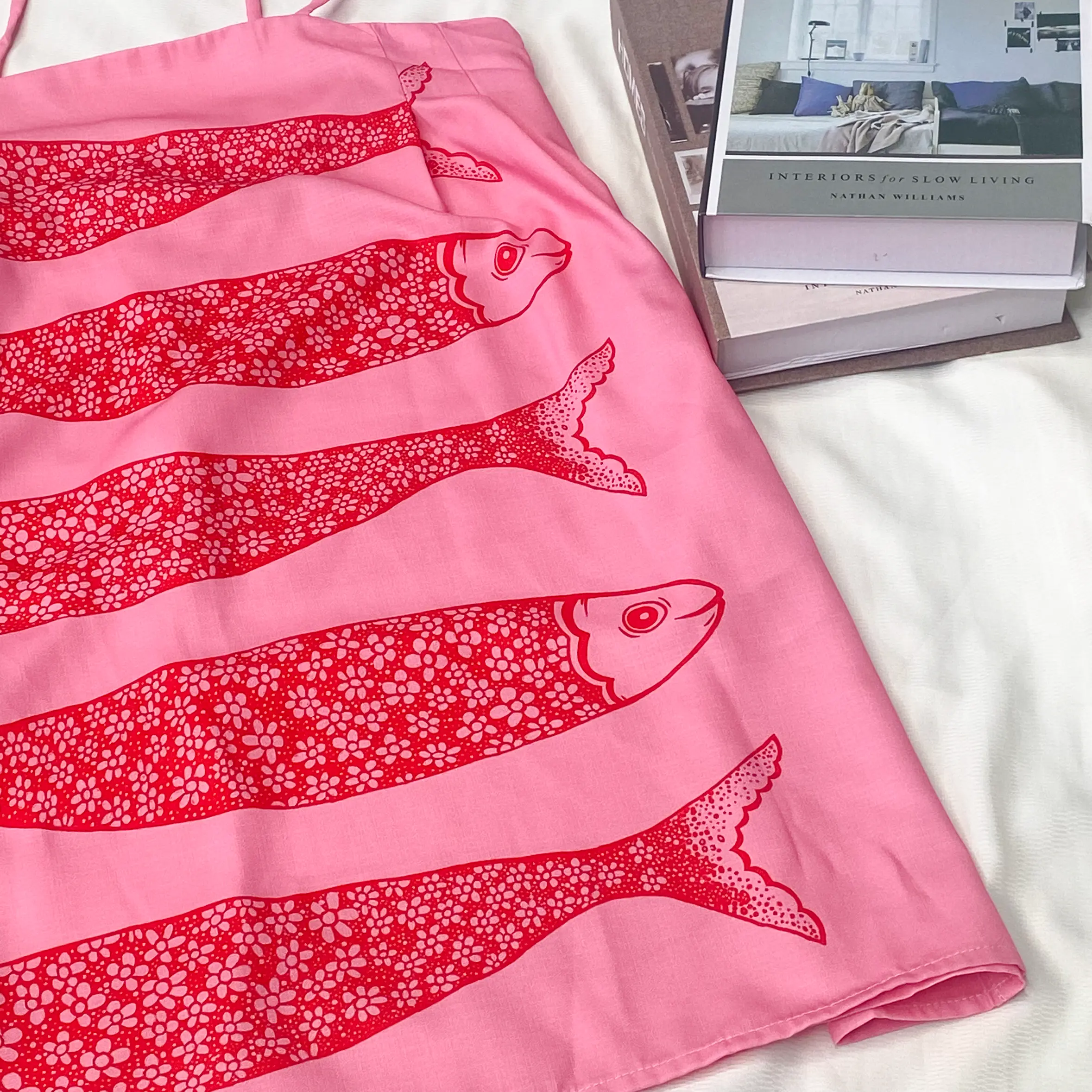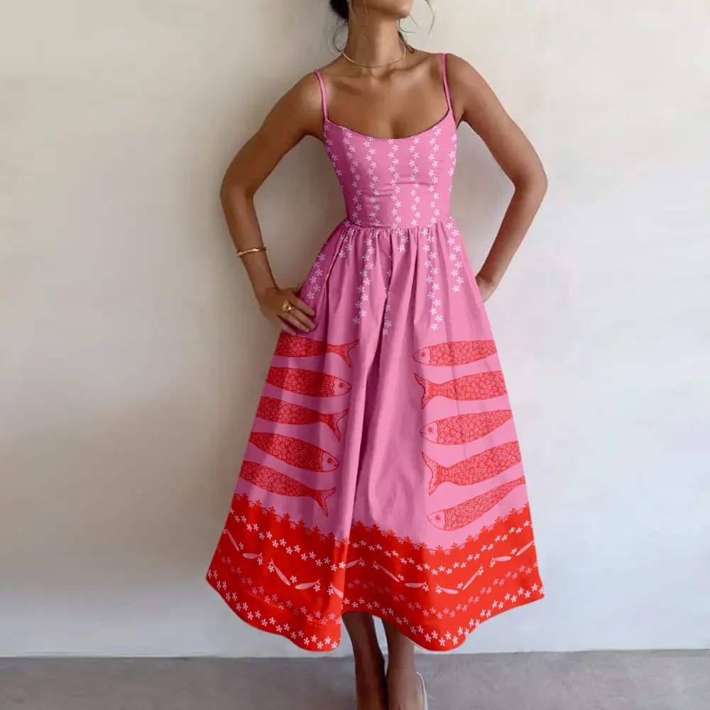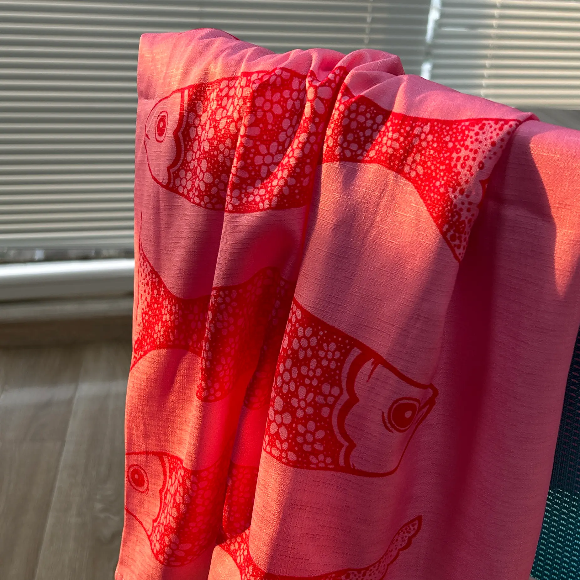 Artistic Design -The pink background is complemented by a red fish pattern, exuding a certain exotic charm and artistic appeal.