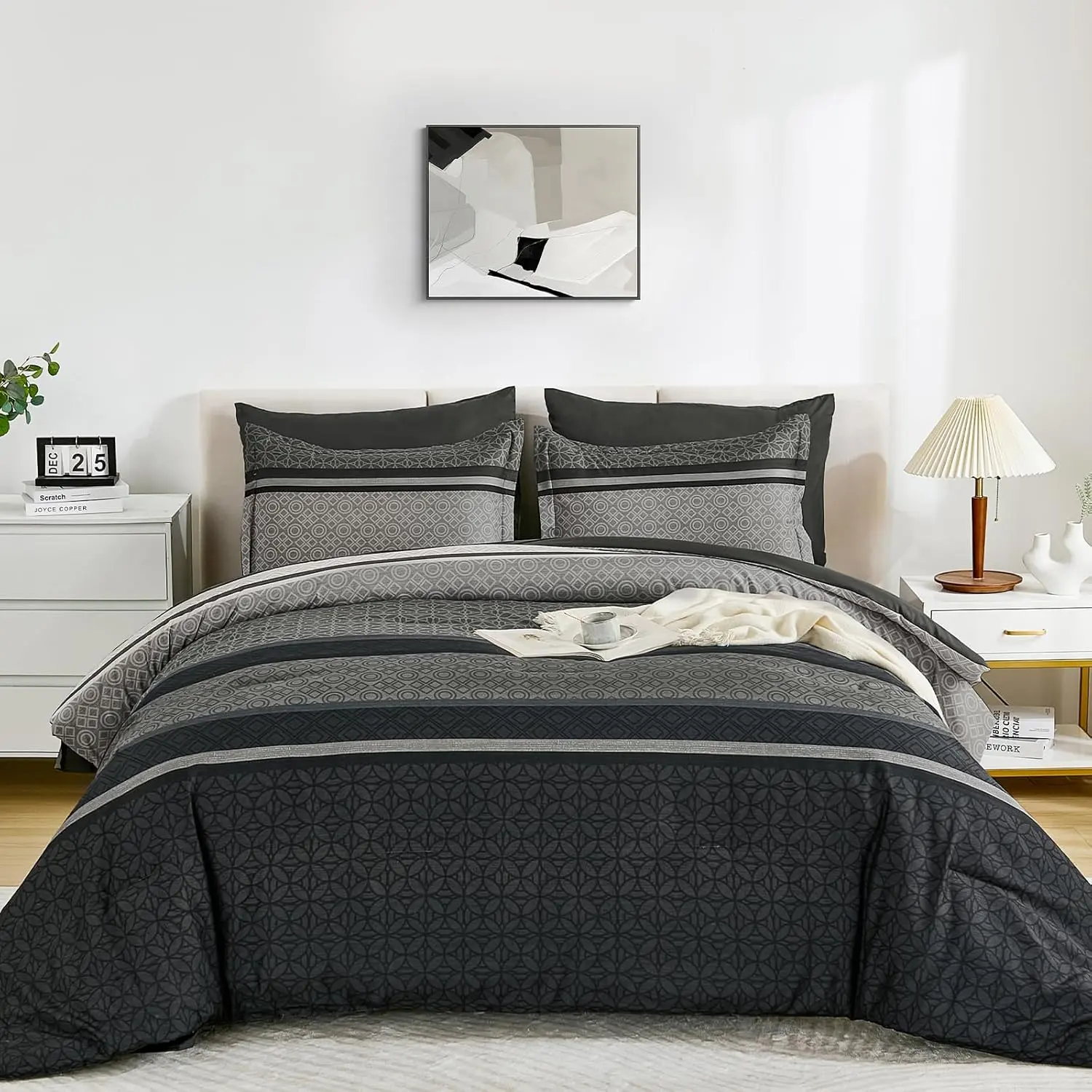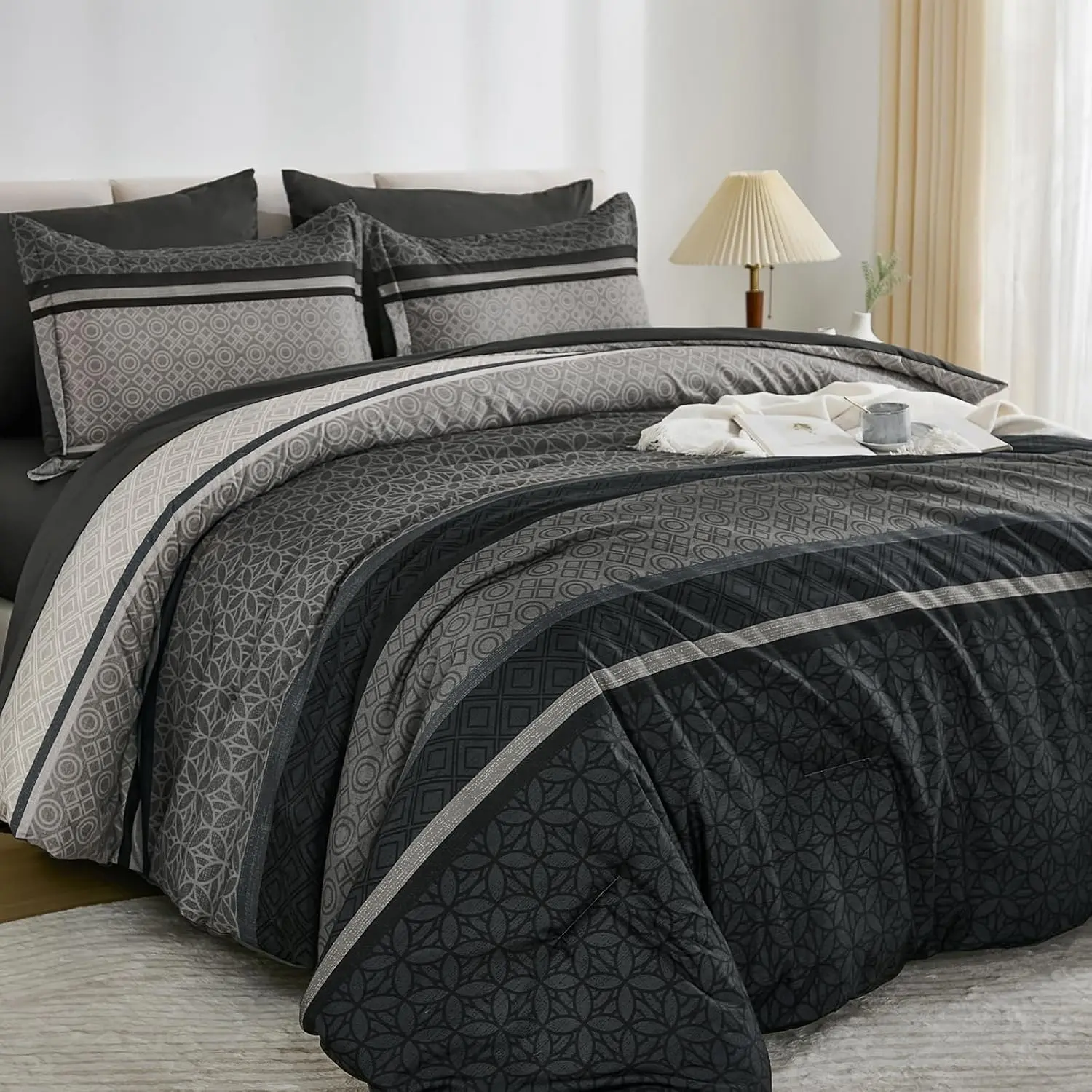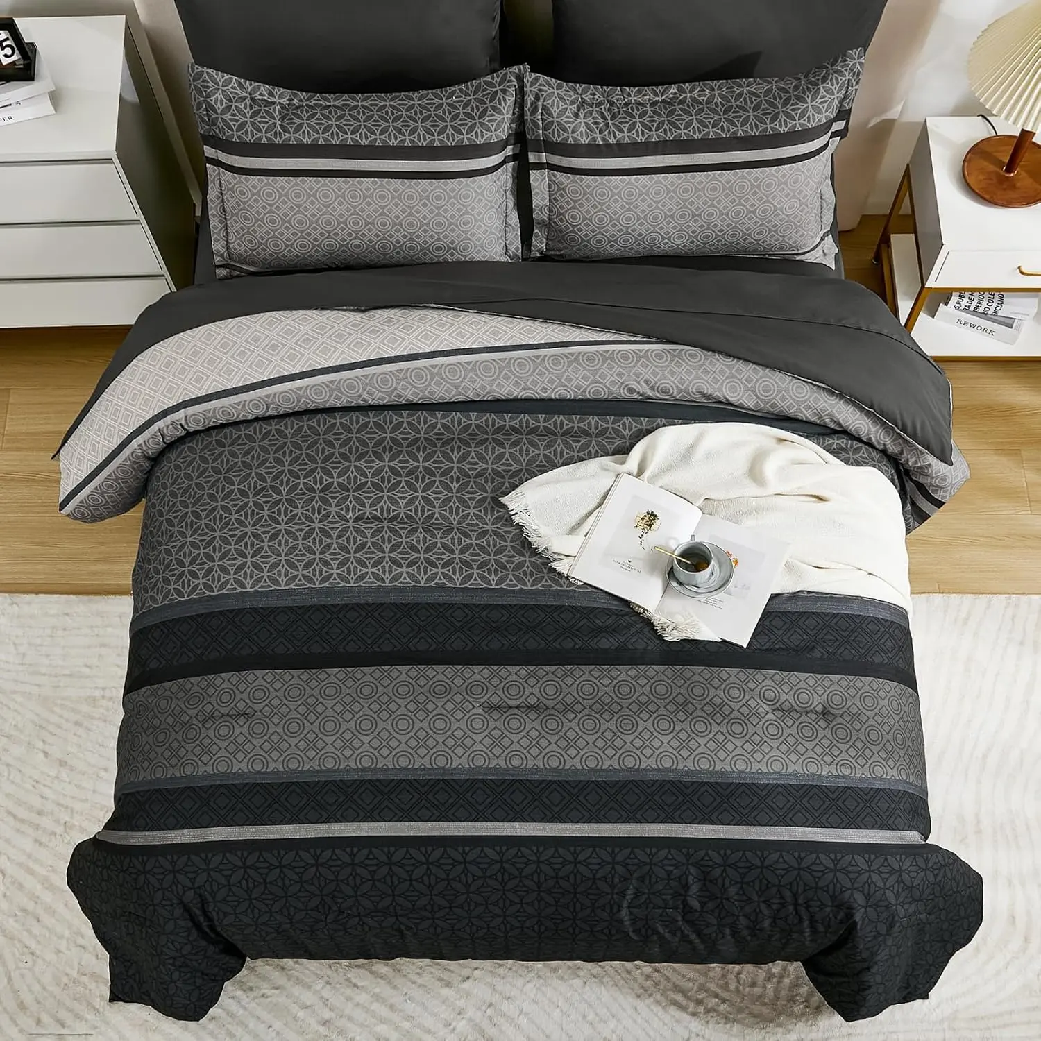 Striped Design: This black grey comforter set is designed with multi-color stripe patchwork, with a modern and fashion design which is chic and elegant,the classic dark grey design is the first choice of fashion people. It is also a idea for your and family on special occasions.