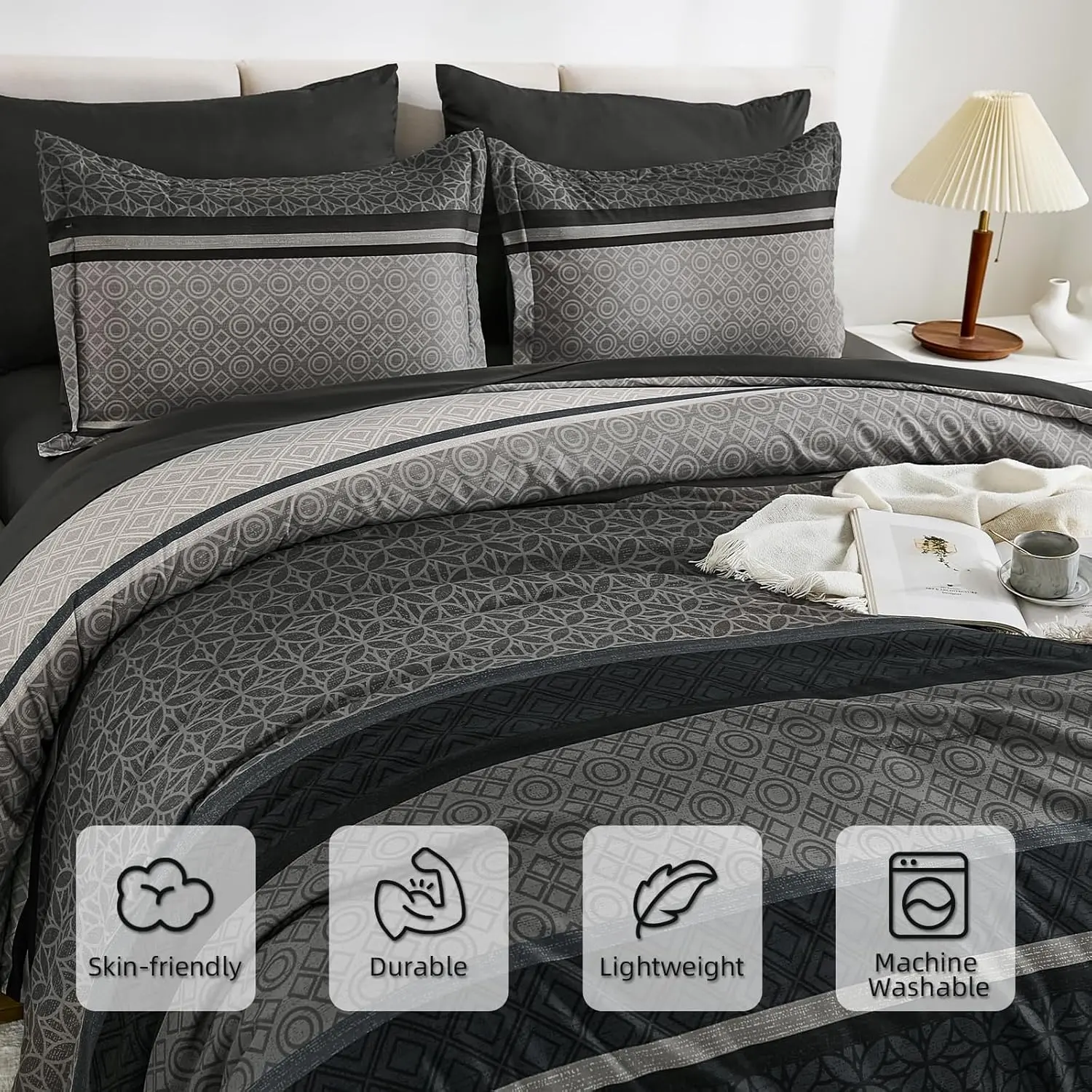Easy to Care: Dark grey black comforter set size is machine washable in cold water, gentle cycle,tumble dry on low temperature. High quility fabric will feeling more soft after each washed, wrinkle free, resistant to dust, please do not bleach to keep the colors vibrant. Free your hands and make housework easier.