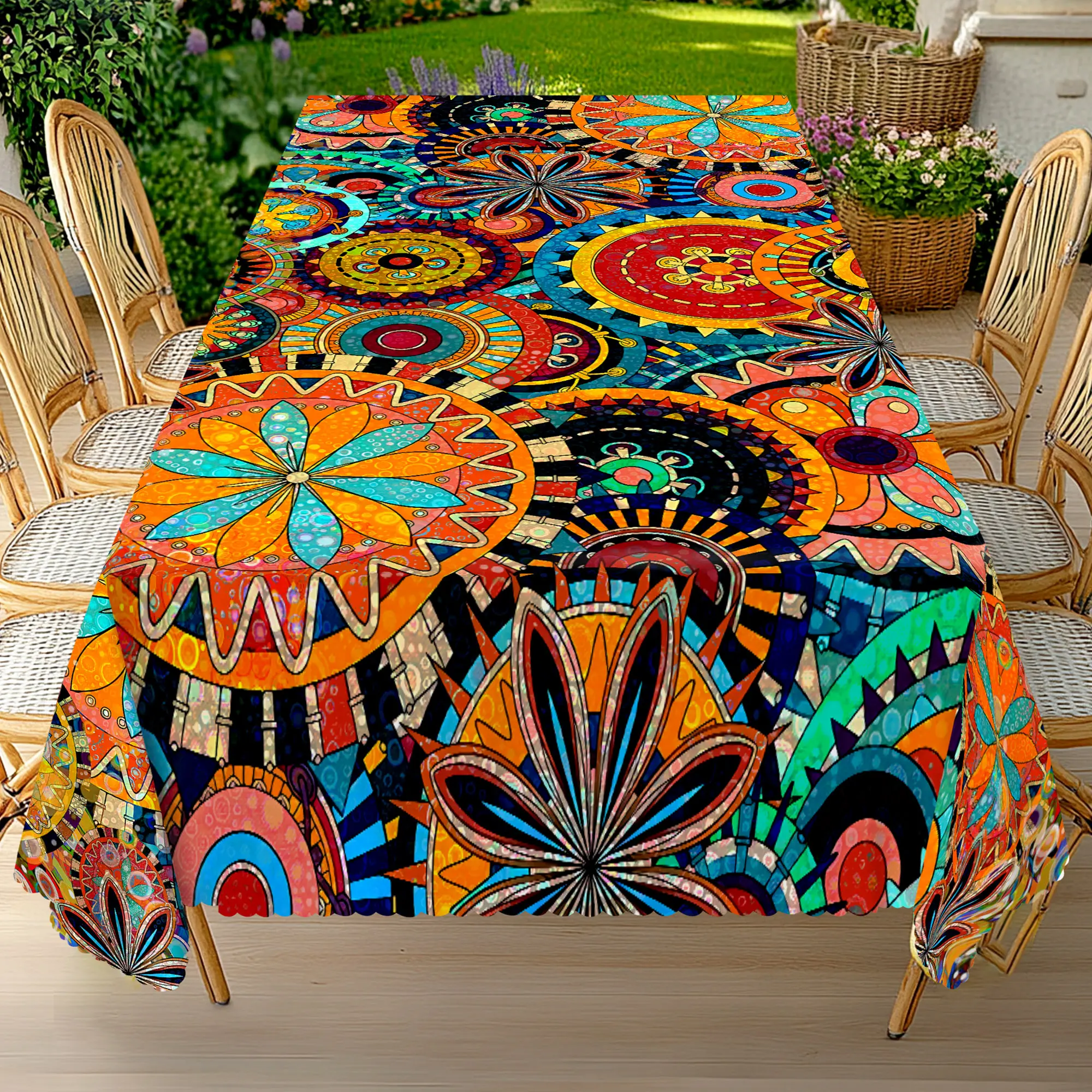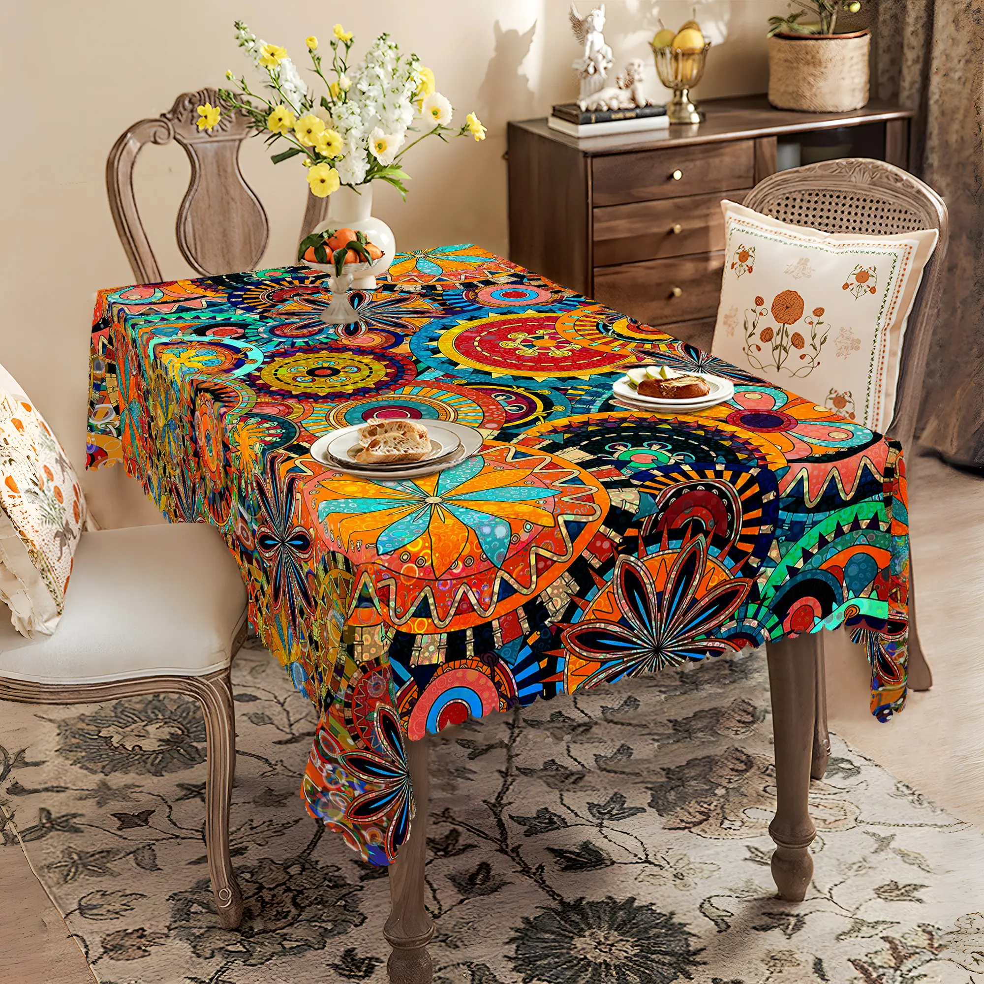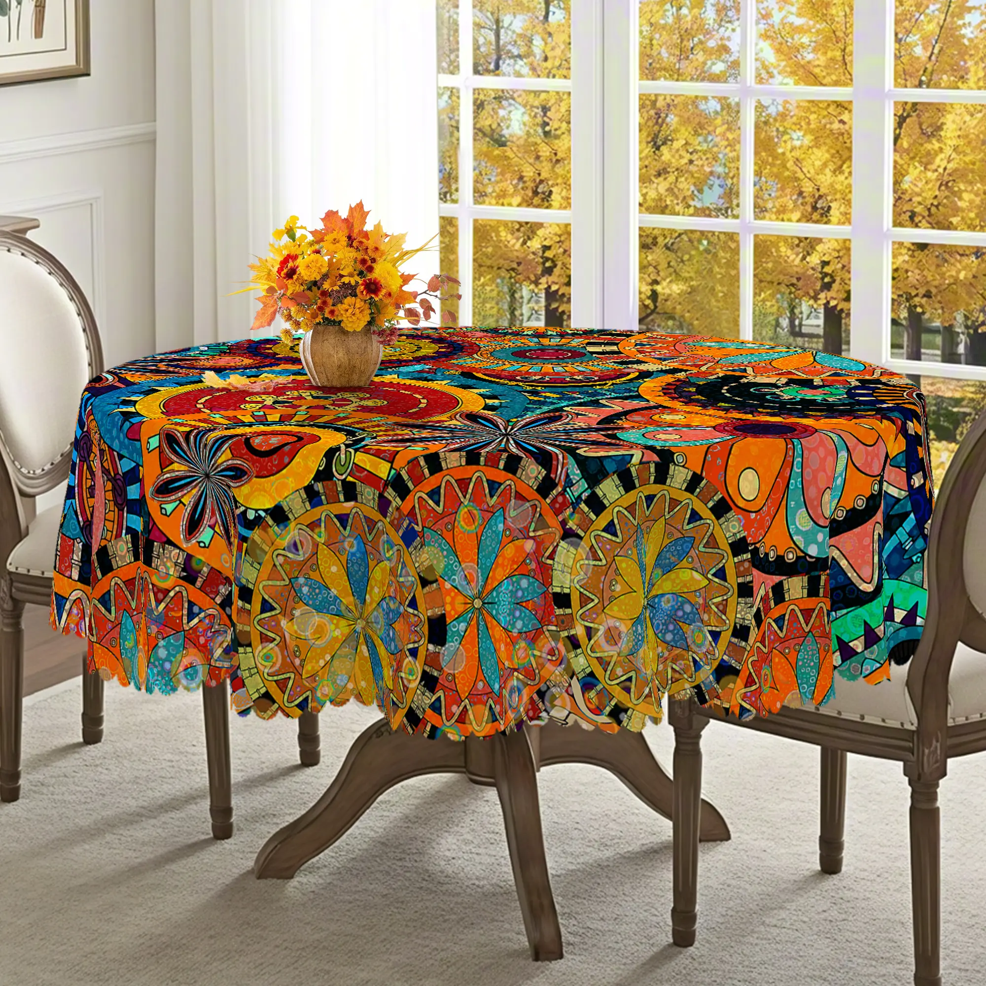 Gorgeous Designs This tablecloth is printed with beautiful colorful detailed pattern, which will brighten up your dining room, living room and patio, bringing a refreshing touch. Note: the back of the tablecloth is white.