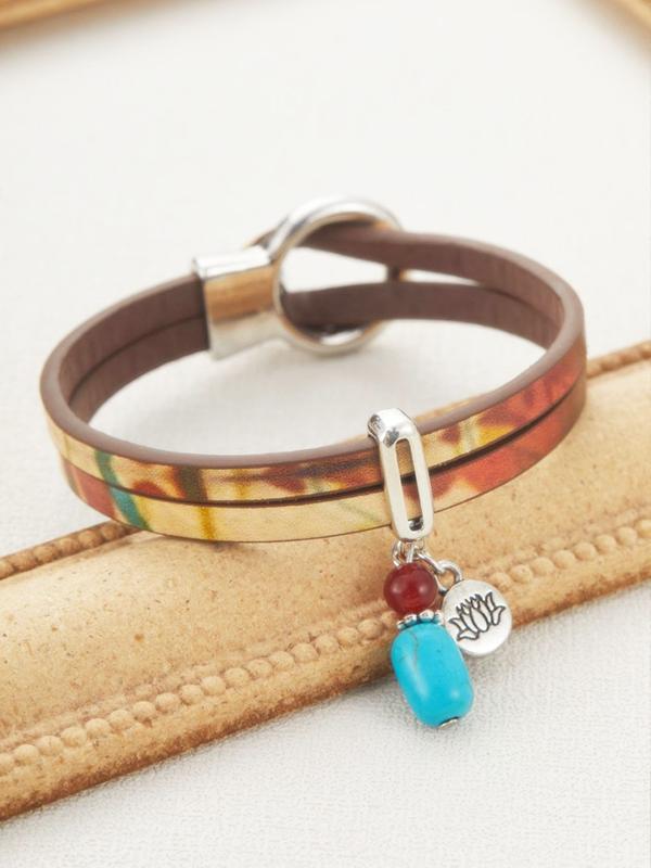 5. Bohemian Style Faux Turquoise Leather Bracelet, Vintage Design Unisex Couple Casual Creative Bangle, Colorful Oil Painting Jewelry Gift, Boho Style Bracelet