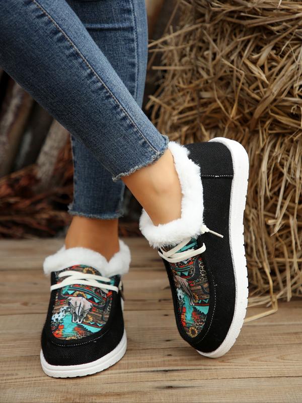 Bohemian Style Winter Snow Boots for Men & Women, Warm Fur Lined Canvas Shoes, Casual Lace-Up Outdoor Urban Sports Sneakers