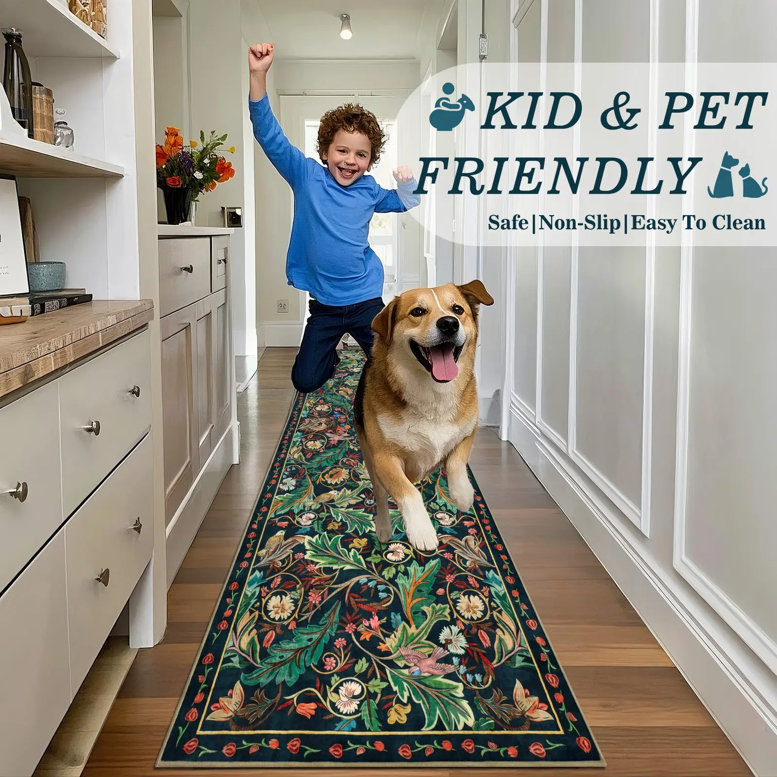 Featuring a premium TPE non-slip backing, this rug stays firmly in place. It prevents slips and falls, protecting your floors from damage. No need for an additional rug pad. The slip-resistant backing ensures safety and durability, suitable for any floor type.