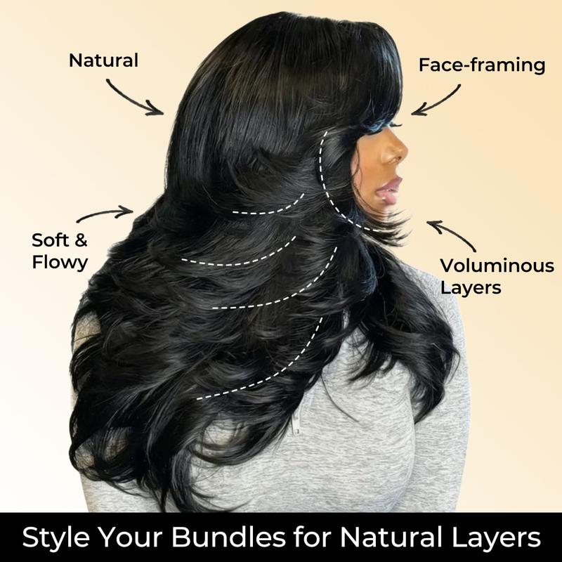 [Wequeen] Best Layer Cut Pack 10A Brazilian Body Wave Straight Hair Bundles Best Layer Cut Pack 3/4pcs Affordable for Sew In, Quick Weave & Closure Behind Hairline Butterfly Cut Valentine Gifts