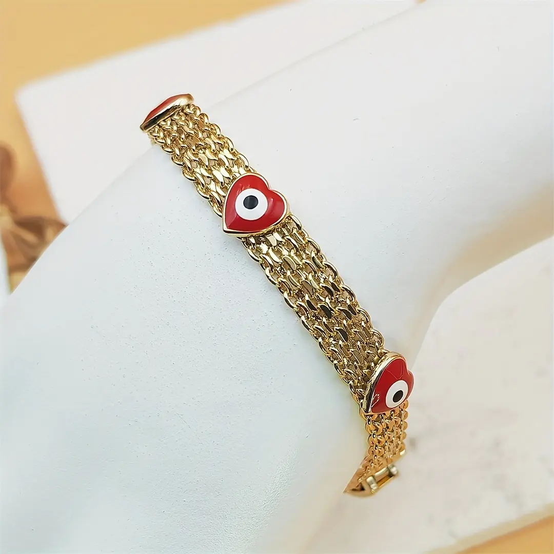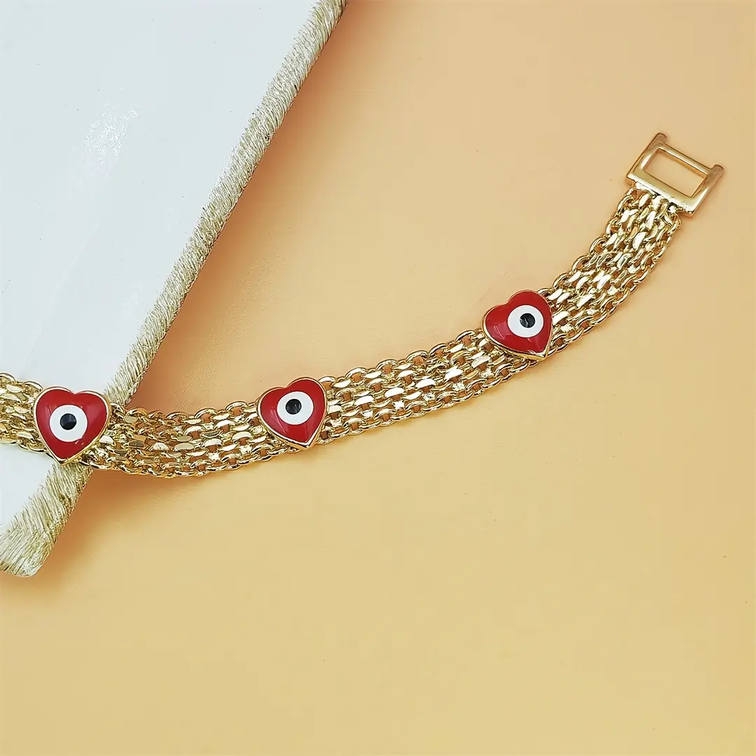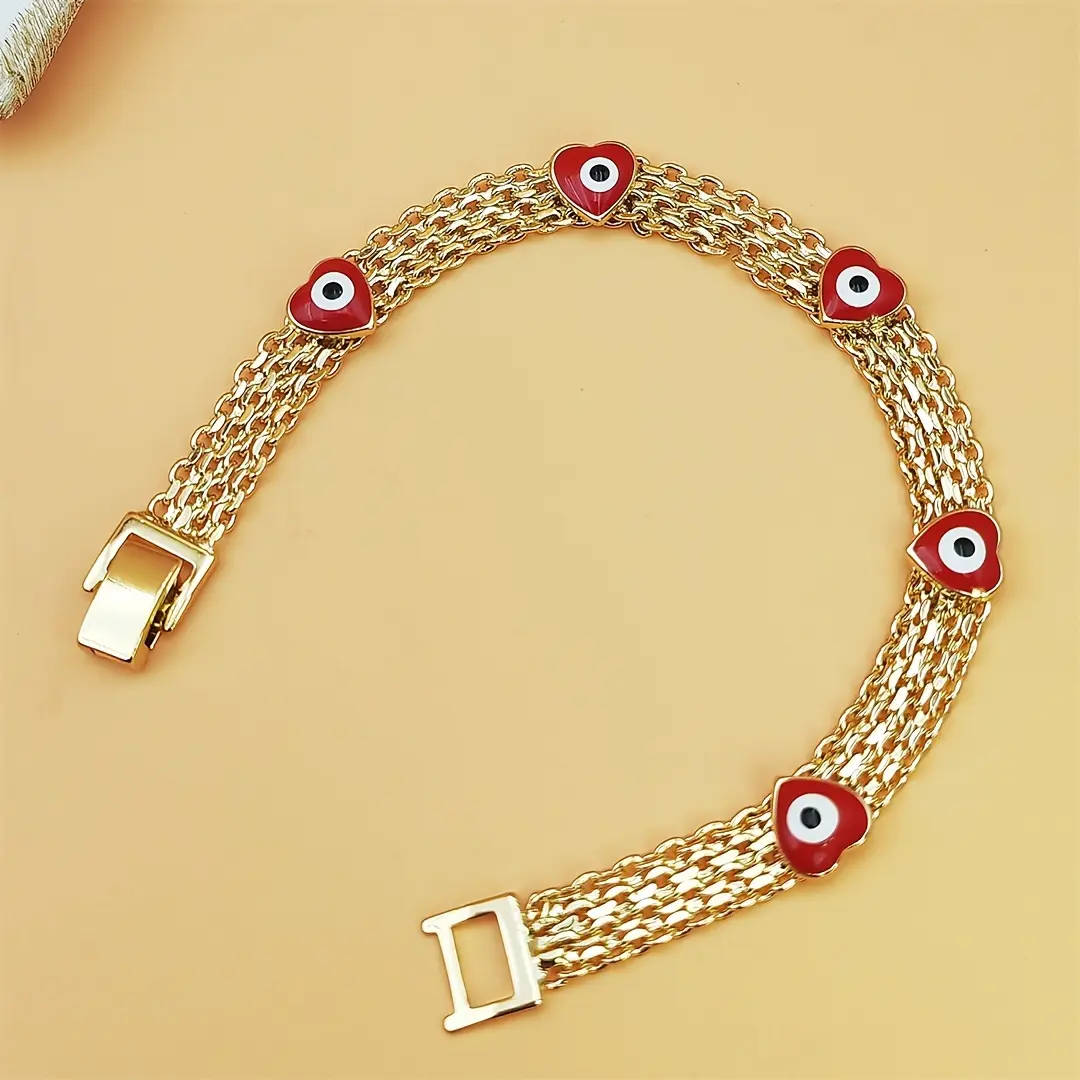 Boho-Chic Evil Eye Charm Bracelet for Women - Luxe Wide Golden-Tone Copper Chain with Red Bead Charms, Everyday Jewelry & Festival Gift, Durable Protection Symbolism, Year-Round Bohemian Accessory, Cute Jewelry, Festival Accessories