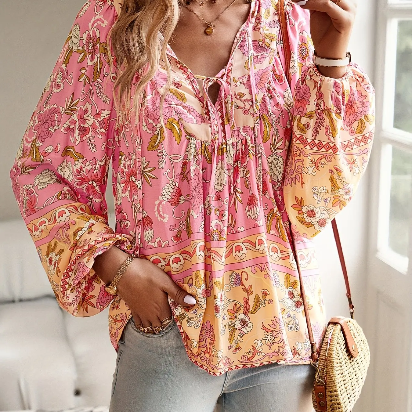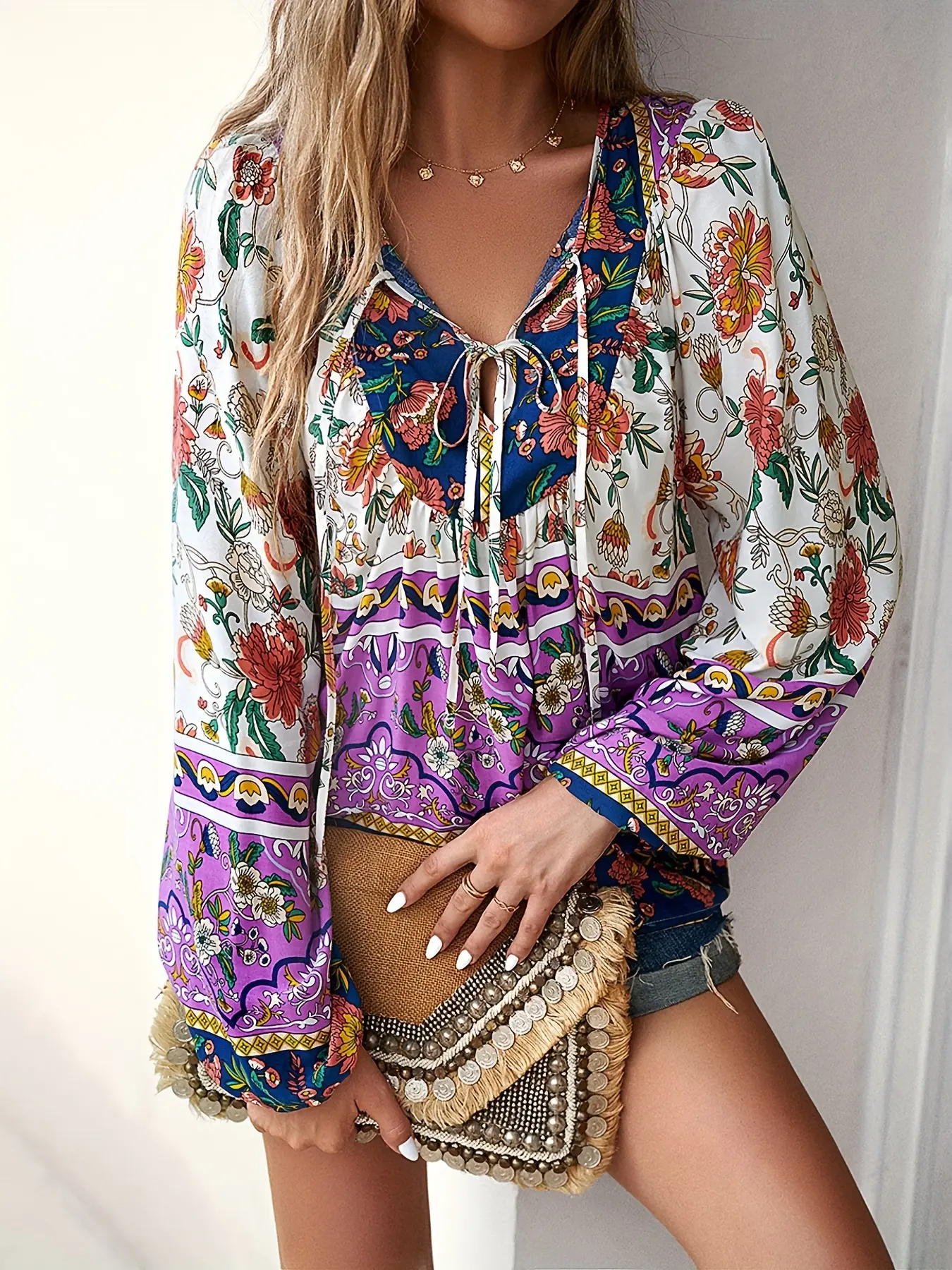 This blouse is pretty and fit well. True to size. The sleeves are great. Push em up or leave them down. Not overly binding. Great length over the tooshie.