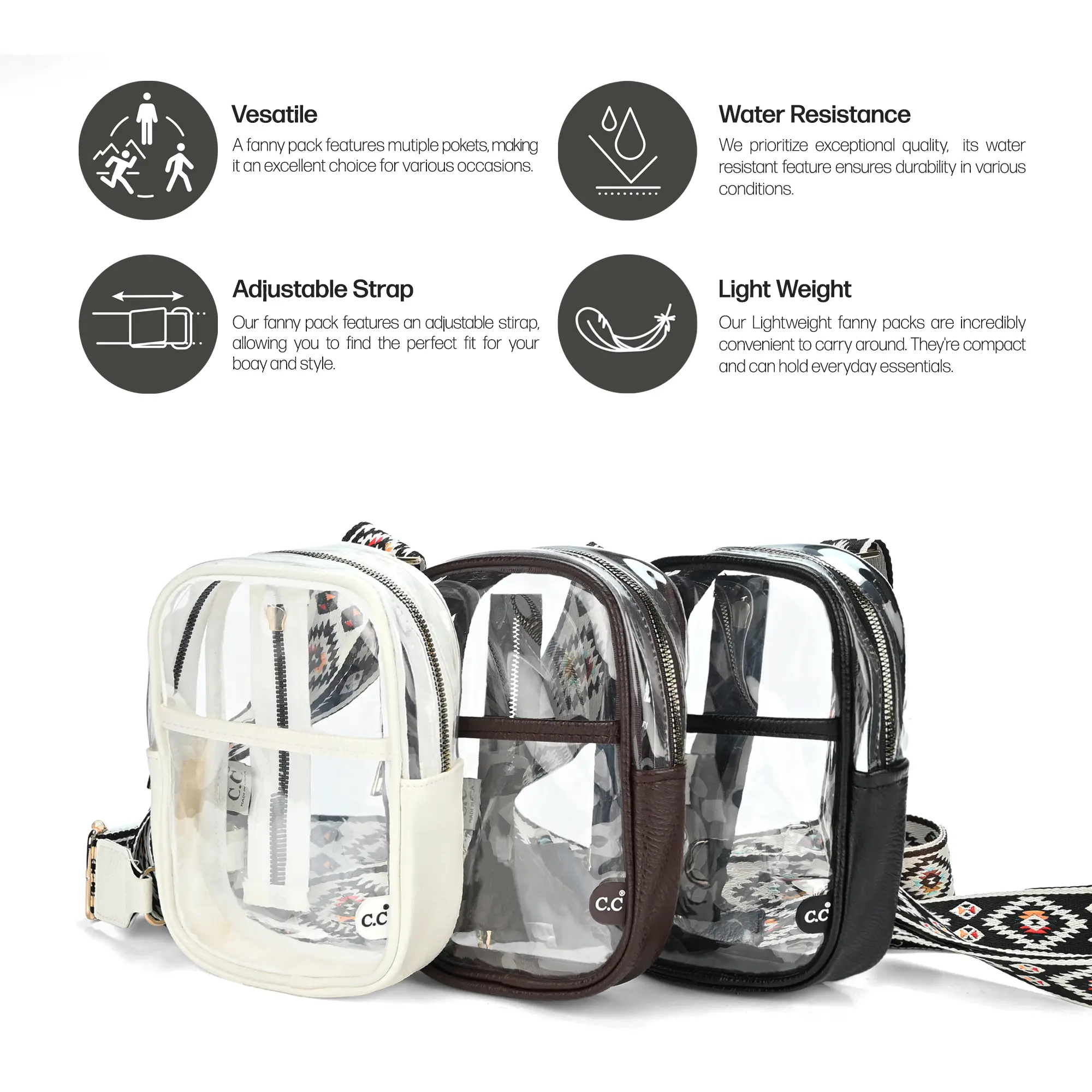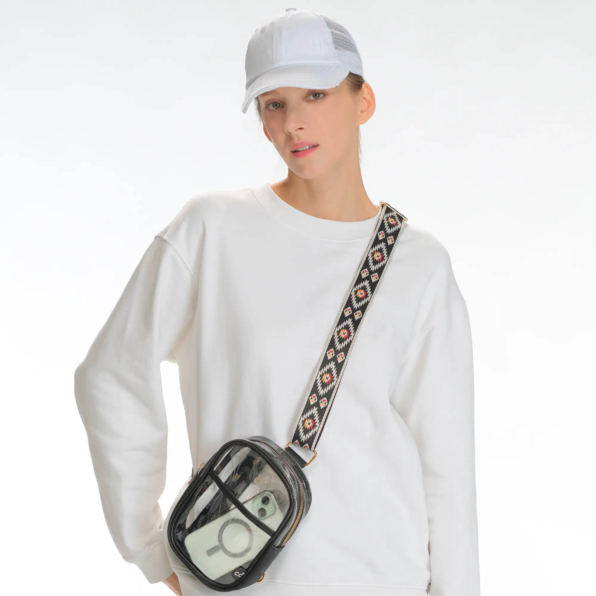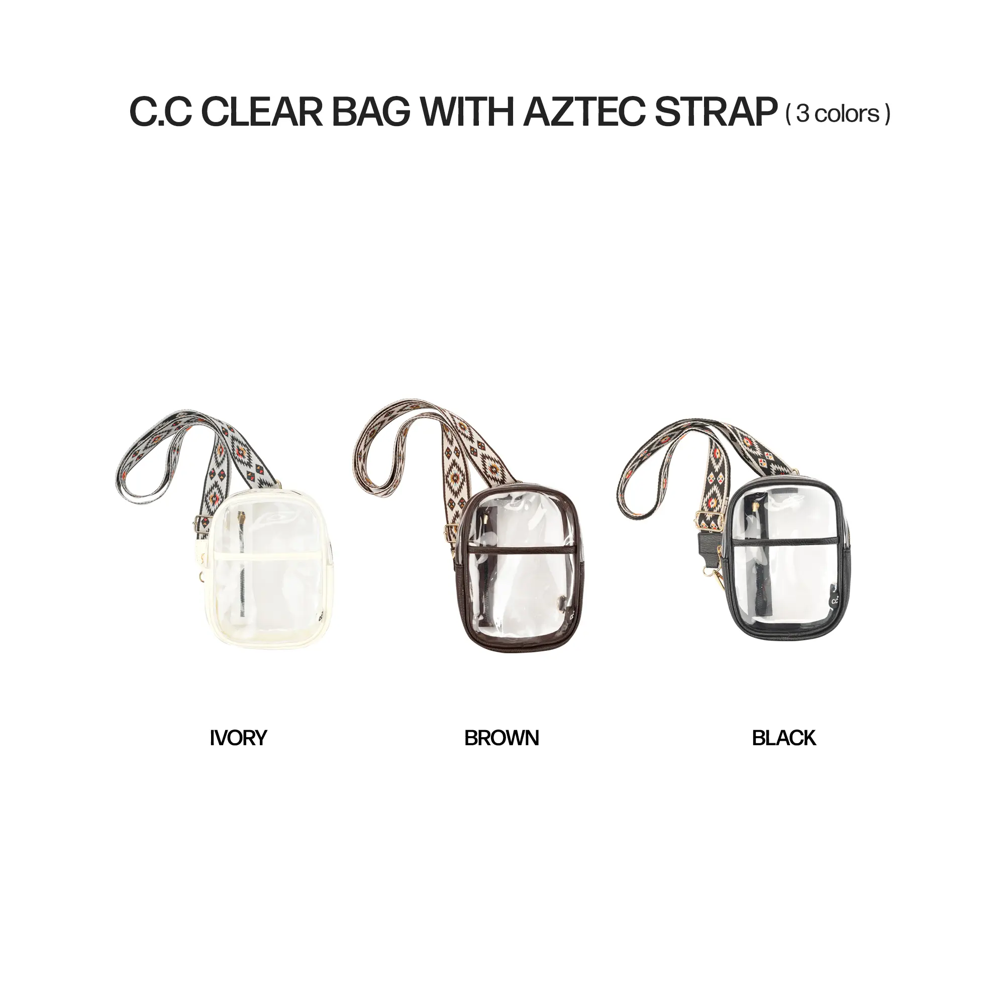 This Clear Bag with Aztec Strap is a perfect blend of style and function for any occasion.