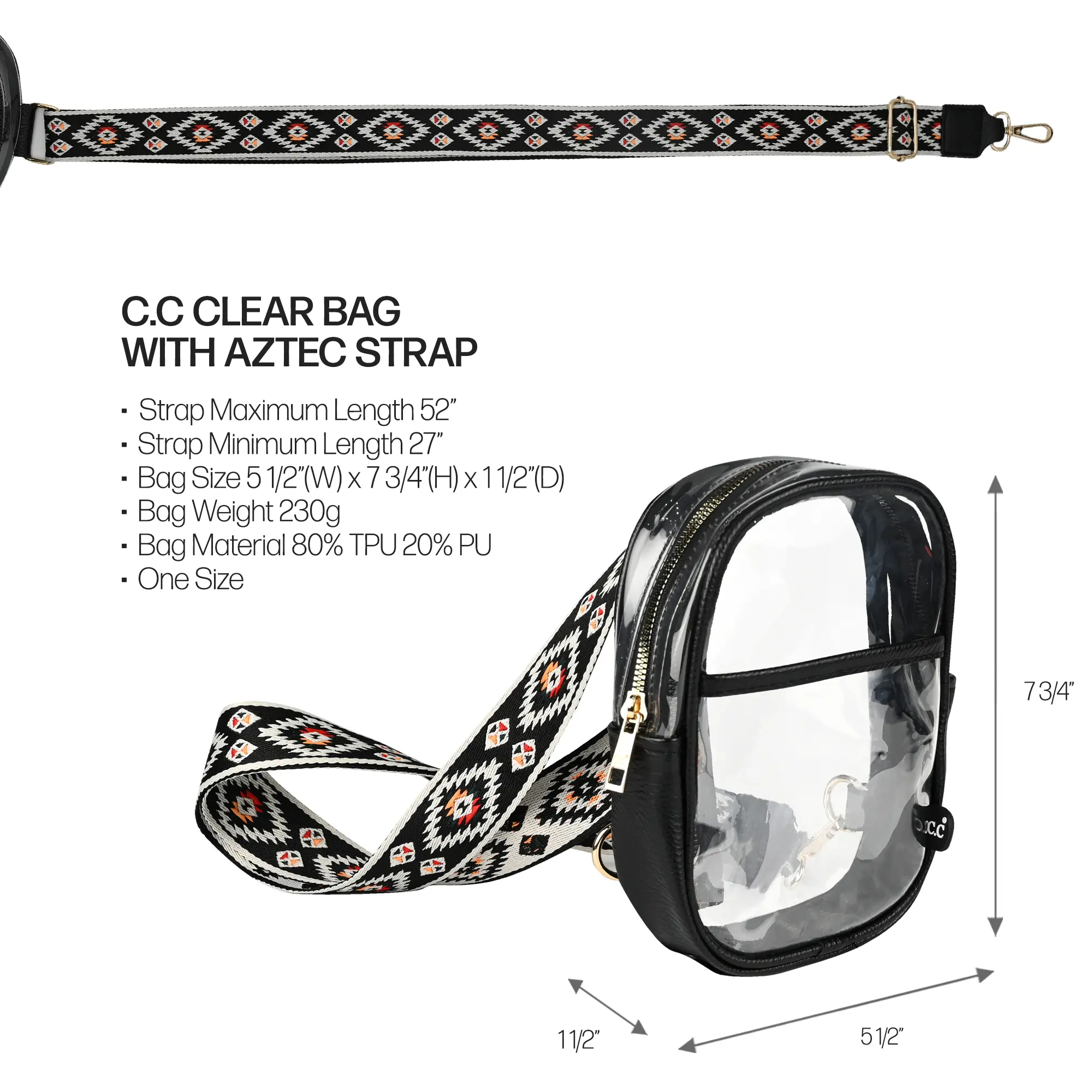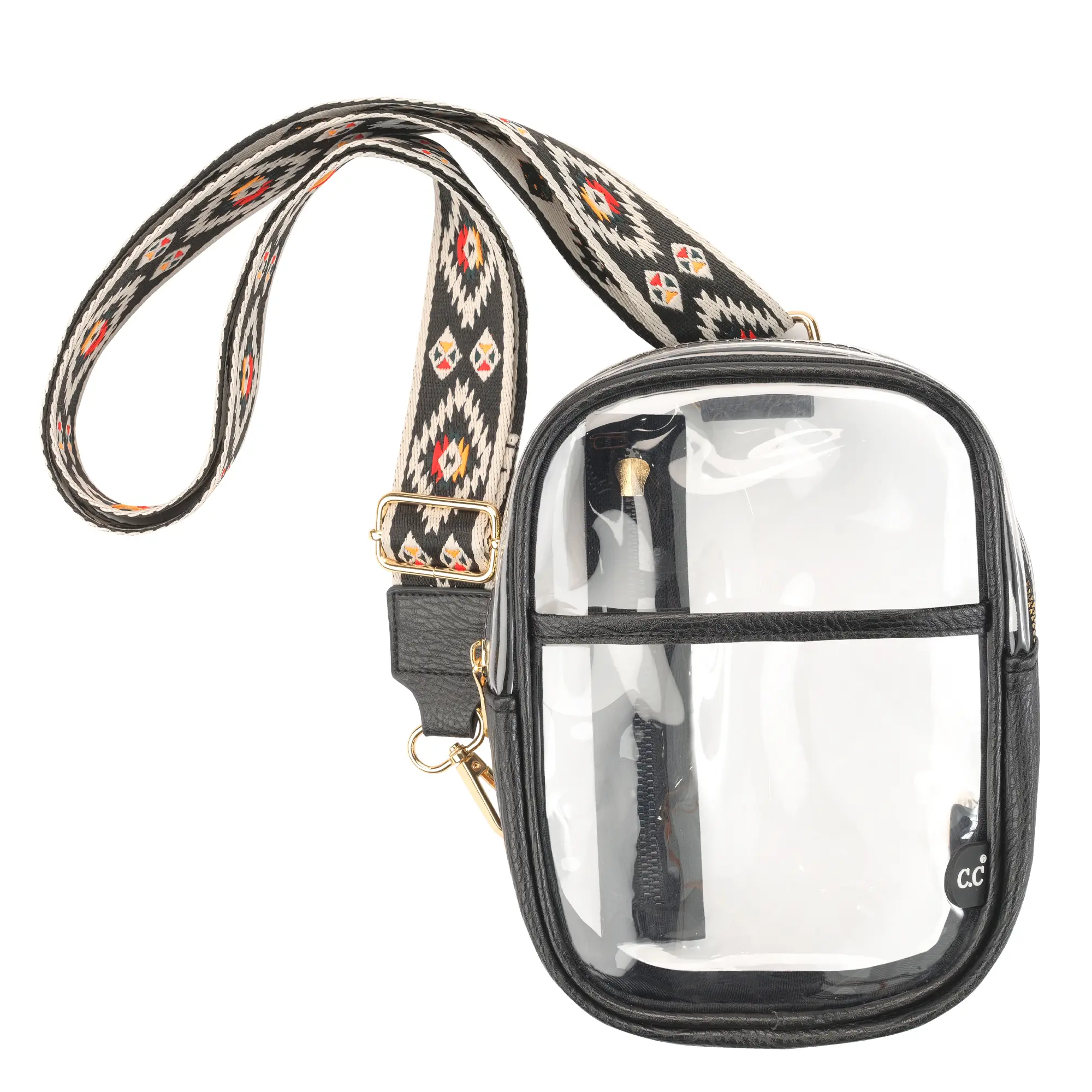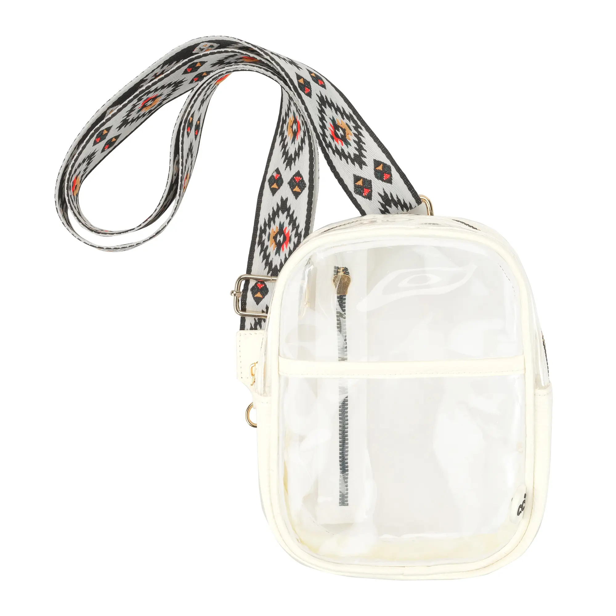Get ready to make heads turn wherever you go by flaunting this Clear Bag with Aztec Strap!