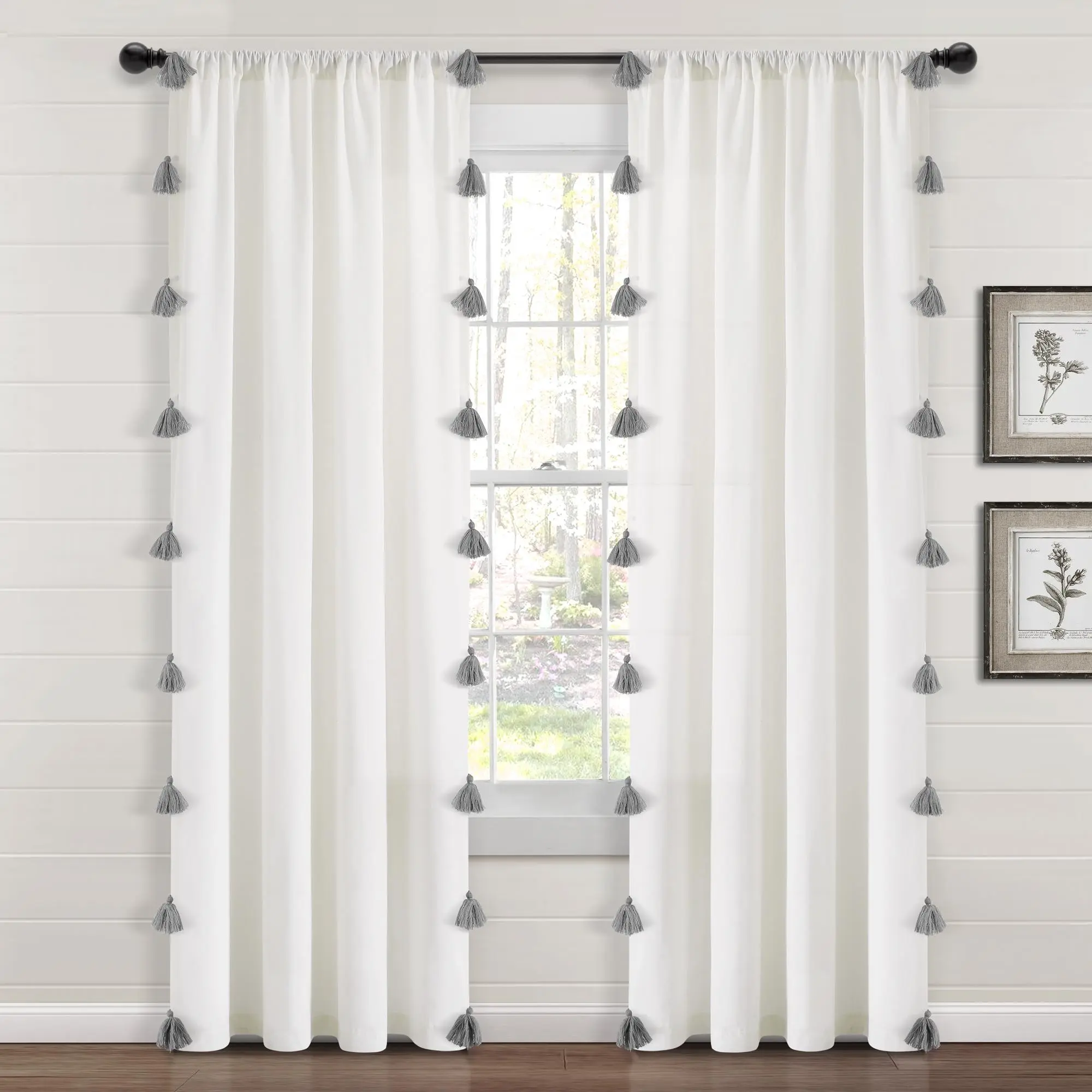Lush Decor Boho Faux Linen Texture Tassel Window Curtain Panel