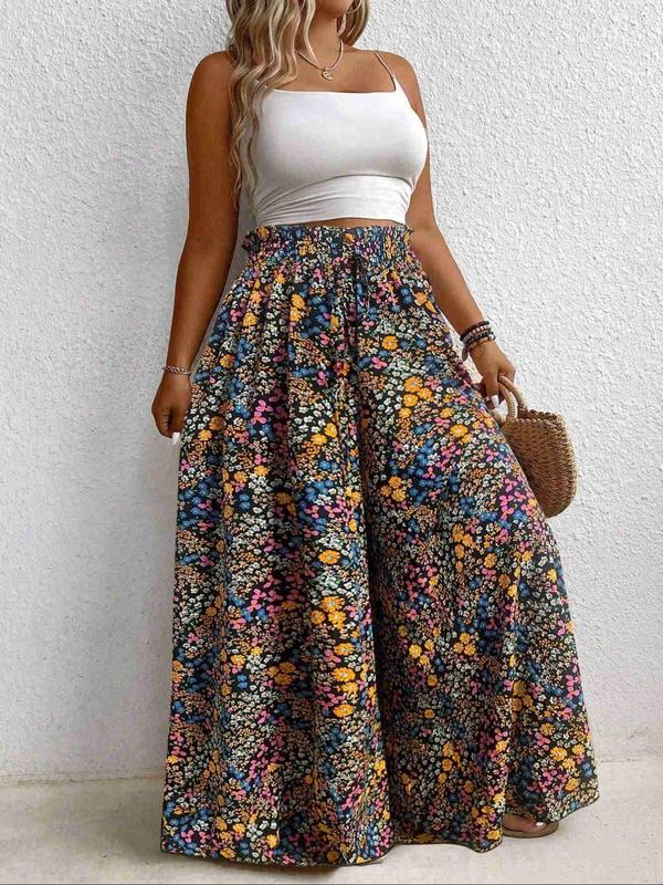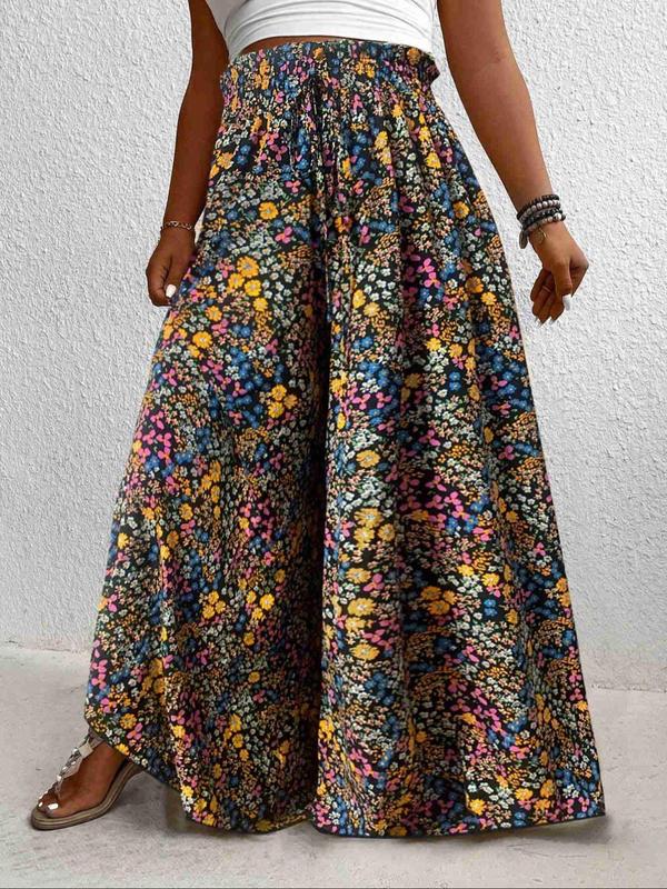 ["Plus Size"] Floral Print Pants, Bohemian Street Trousers, Boho Casual Comfy Wide Leg Trousers for Vacation Holiday, Women's Bottoms for Summer