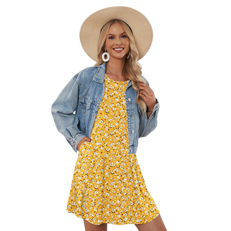 AUSELILY Women's Boho Floral Summer Dress Rose White Fitted Sleeveless Casual Beach Sundress with Pockets 2026 New Womenswear Bohemian Style