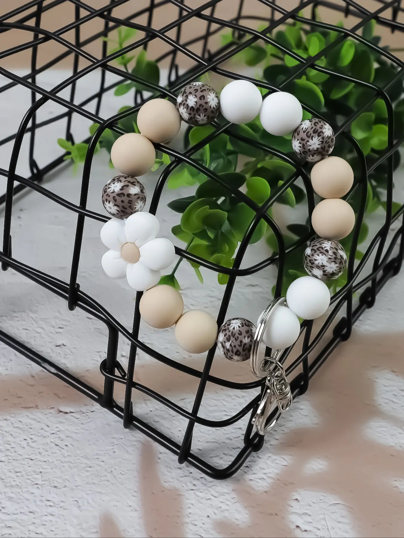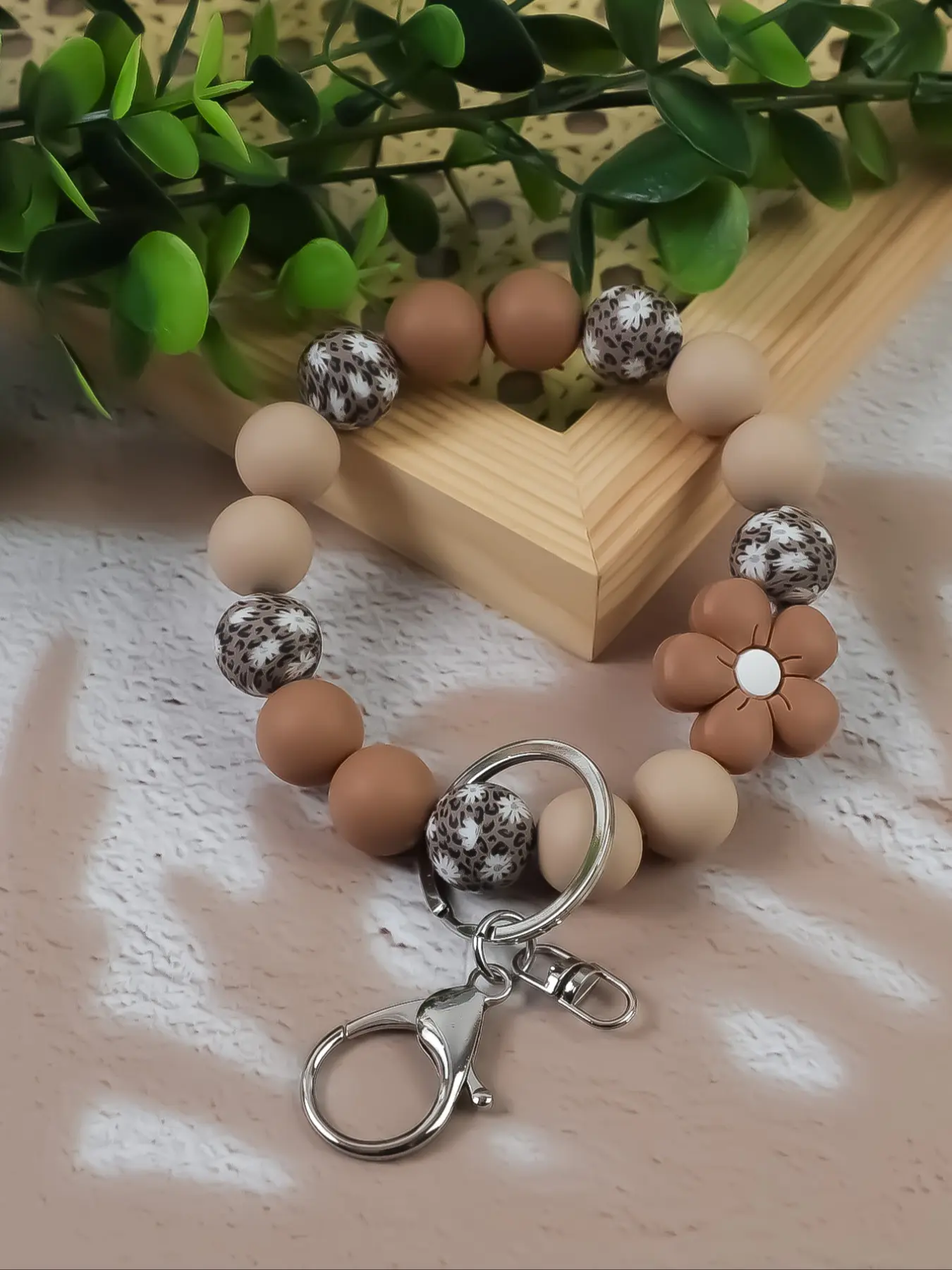 【Boho Flair】: This keychain features a boho chic with a vibrant flower pattern and silicone beads, distinct from the regular plain and metallic keychains.