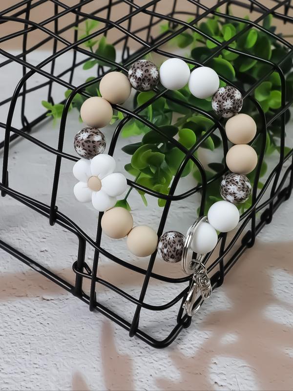 Boho Style Flower Decor Beaded Keychain, Vintage Style Silicone Beaded Keychain for Women & Men, Fashion Accessories for Daily Use, Floral Pattern Keychain