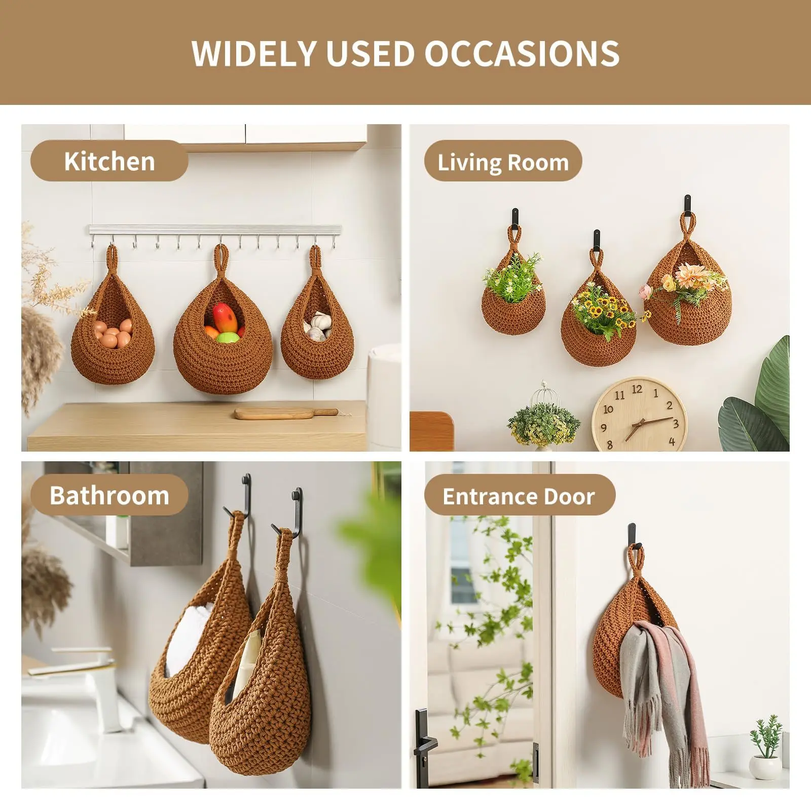 ·Wide Applications - The wall hanging basket kit can be widely used in many occasions, such as home kitchen, dinning room, restaurant, hotel, patio, etc. Delicate appearance make hanging storage basket is a great wall decor. There is no doubt that these wall baskets ideal gifts for birthday parties, holidays, and housewarming.