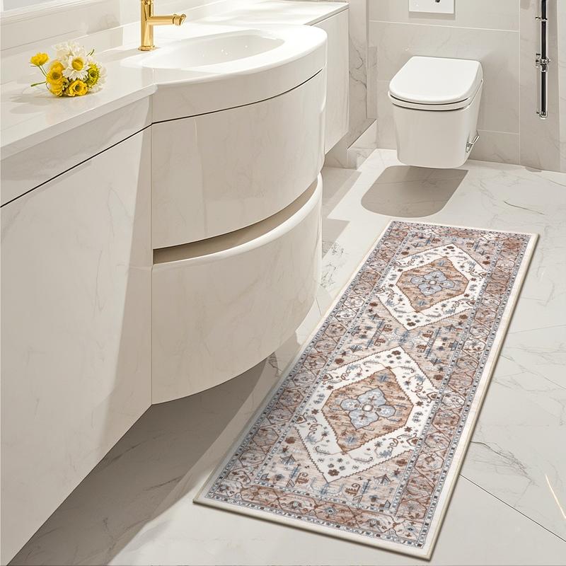 Durable Kitchen Floor Mat: Our kitchen runner rug is made of premium polyester fabric with exquisite printing process, long-lasting and durable, won't fade or shrink. 0.39" thick washable kitchen rug is perfect to fit under the door in high traffic areas