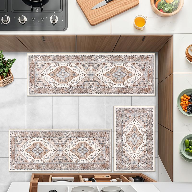 Kitchen Rugs Sets of 3: Boho kitchen mats for floor measures 20"x32"+20"x47"+20"x59", perfect wider and larger size kitchen floor mat with vintage design brings a splash of color and adds an elegant touch to your home