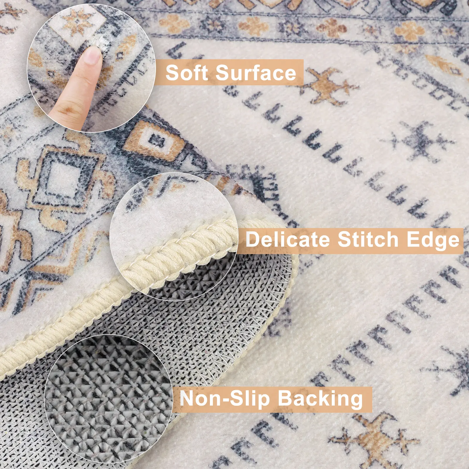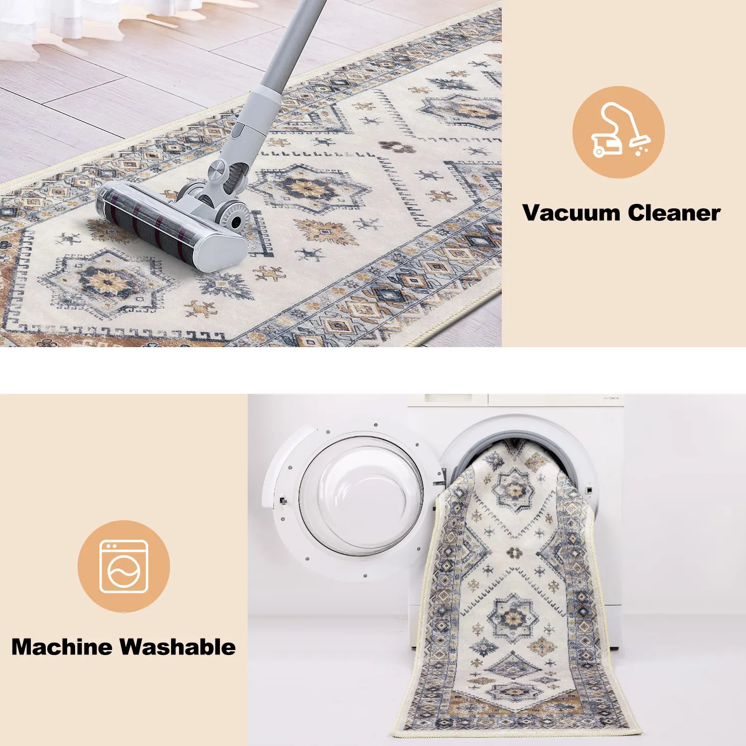 ·【Warm Tips】:Rugs may have temporary creases when you get them. You can either let them flatten and settle naturally in 24 - 48 hours or use a heavy object to press the creases for a quicker removal.
