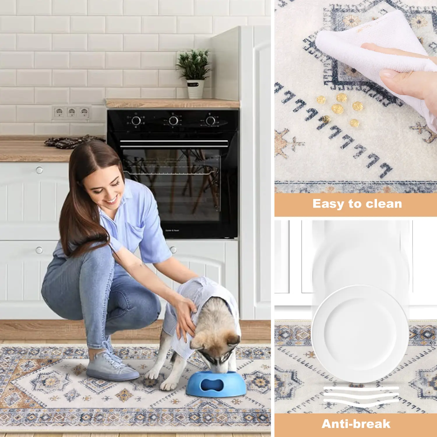 ·Wash Instruction Washable Kitchen Rug Runner: Machine wash separately this low profile rugs for kitchen in cold water. Use mild detergent or simply wipe dirt off with a hand-held vacuum. Do not bleach or dry clean. Do not use fabric softeners or dryer sheets. No ironing, anti-exposure. Do not wring, line dry for best results.