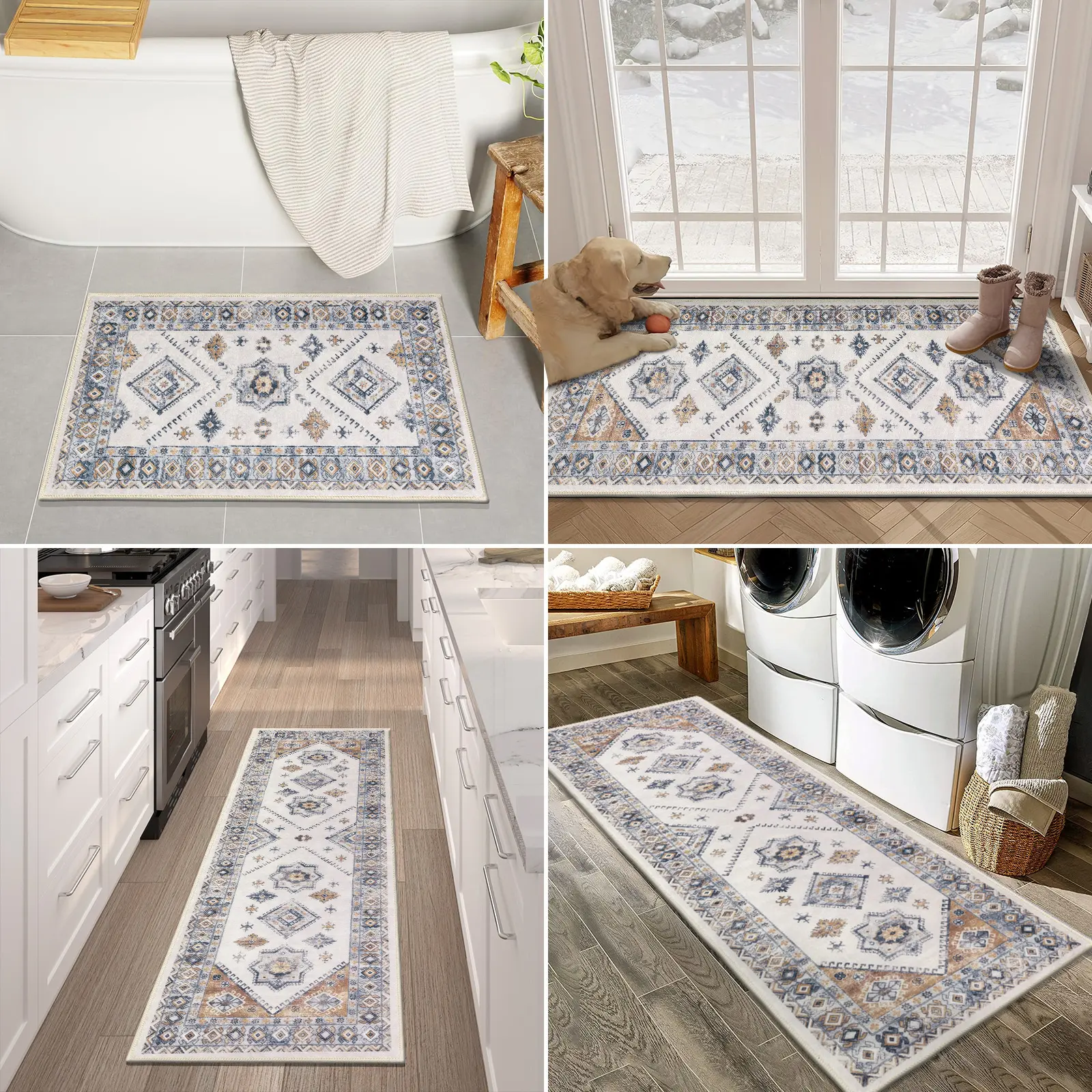 ·Widely Use & Great Gift: The distressed hallway runner rug carpet is ideal solution for wash room floor mat, laundry room rug, kitchen rug carpet, indoor entrance doormats, hallway runner rug, bathroom rug, nursery rug, can be placed in any setting fit under doors well. Great gift option for Winter, Christmas, Thanksgiving and New Years. It's worth buying!