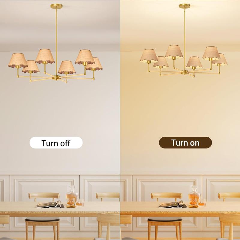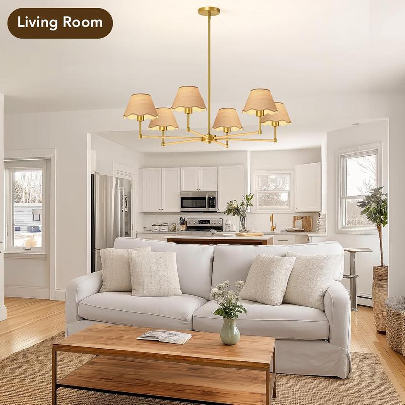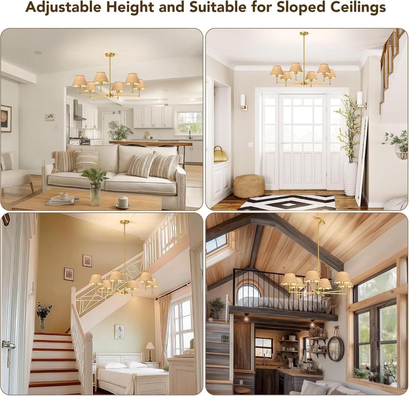 2. 【Perfect Size and Adjustable Length】The golden chandelier measures 35.5 inches in diameter x 46.5 inches in height, and equipped with 3 12-inch and 1 6-inch adjustable length light poles.