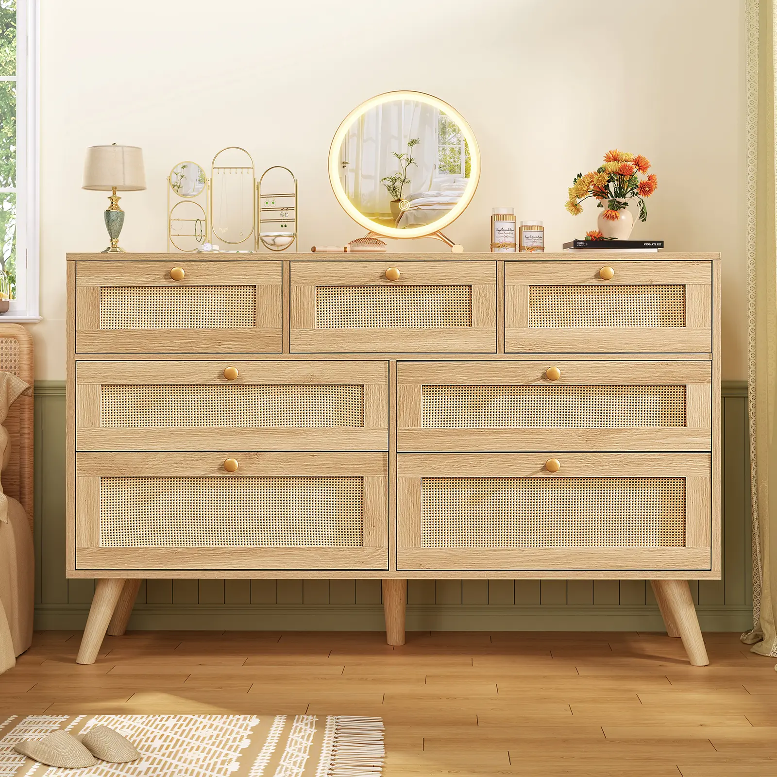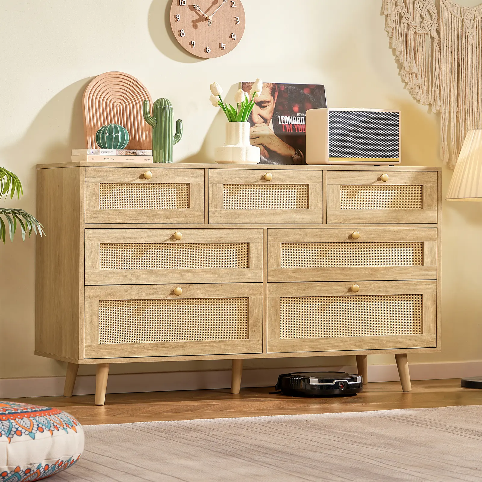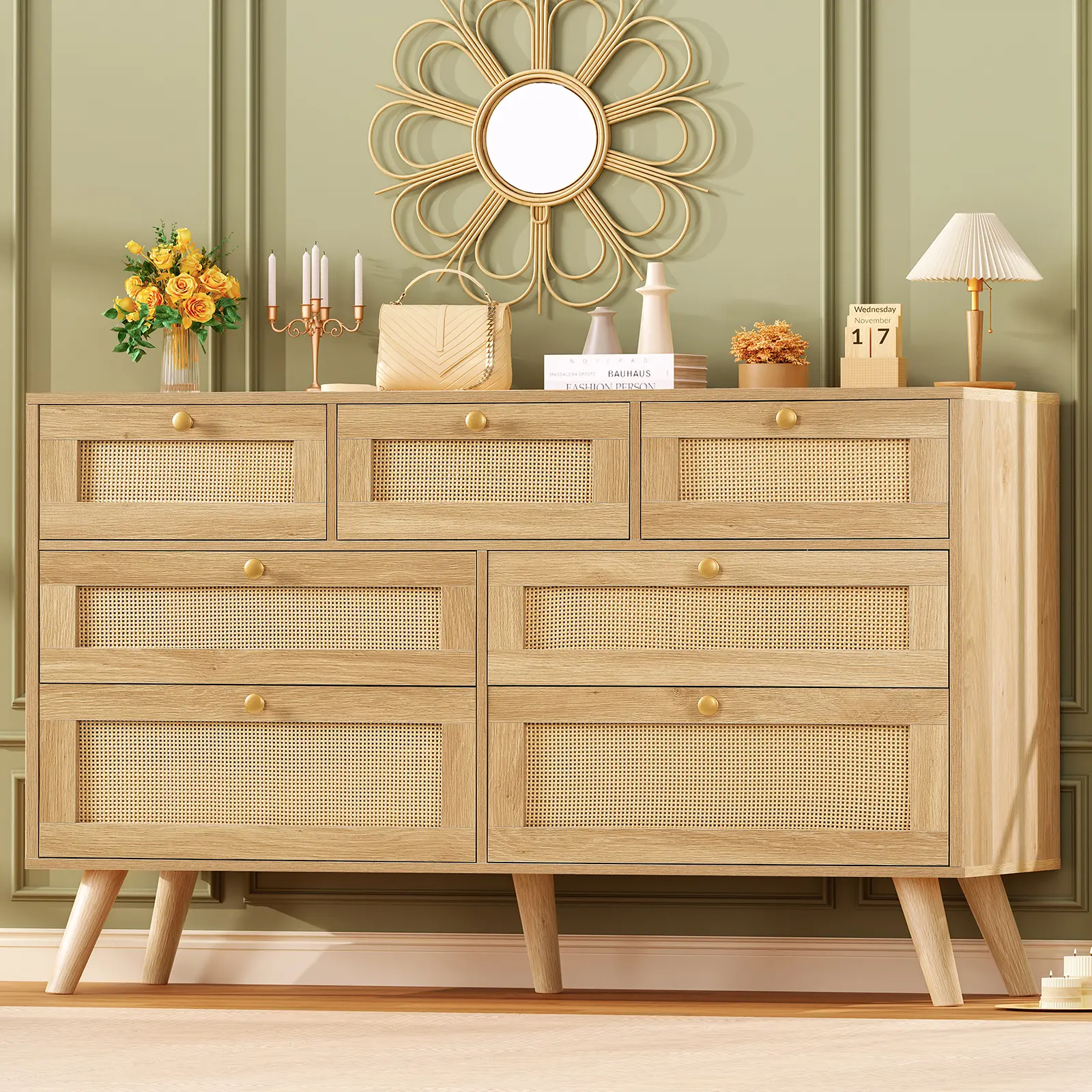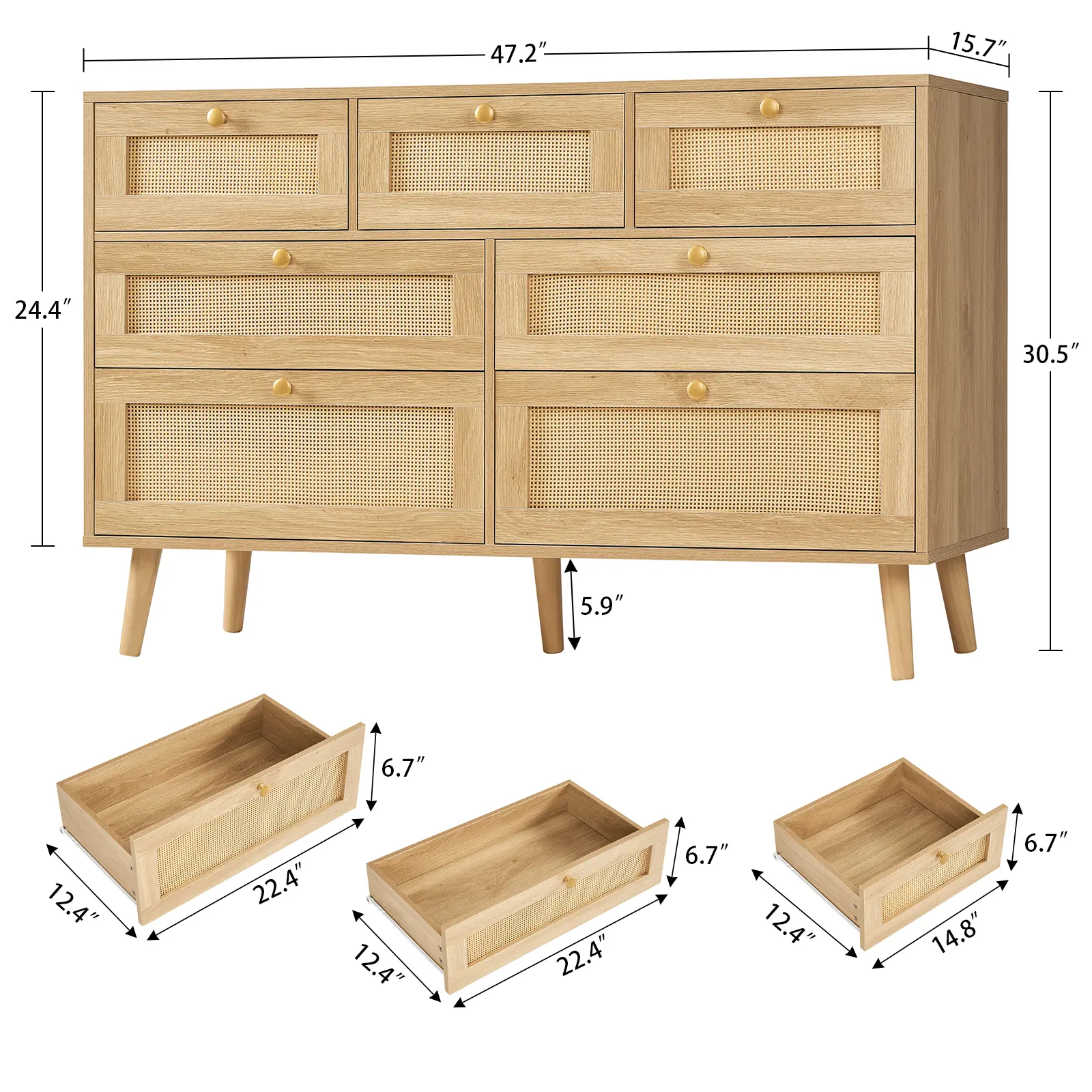 ✨ Elevate your space with this 47" rattan dresser. It features a spacious design with 7 drawers, perfect for clothing storage. The boho & farmhouse aesthetic adds a touch of charm. Ideal for hallways, living rooms, or bedrooms, it blends functionality with style. This versatile piece enhances any room decor effortlessly.