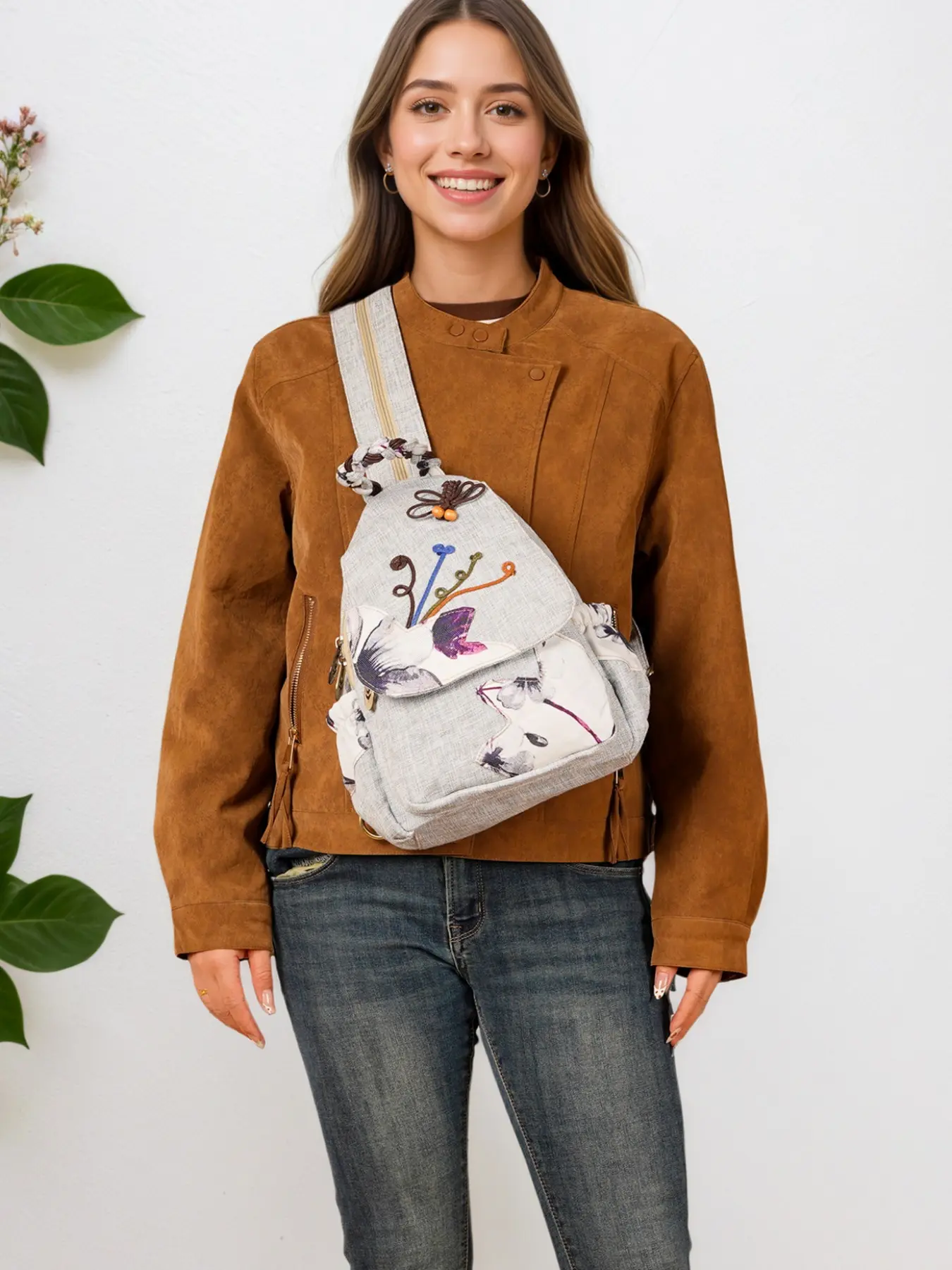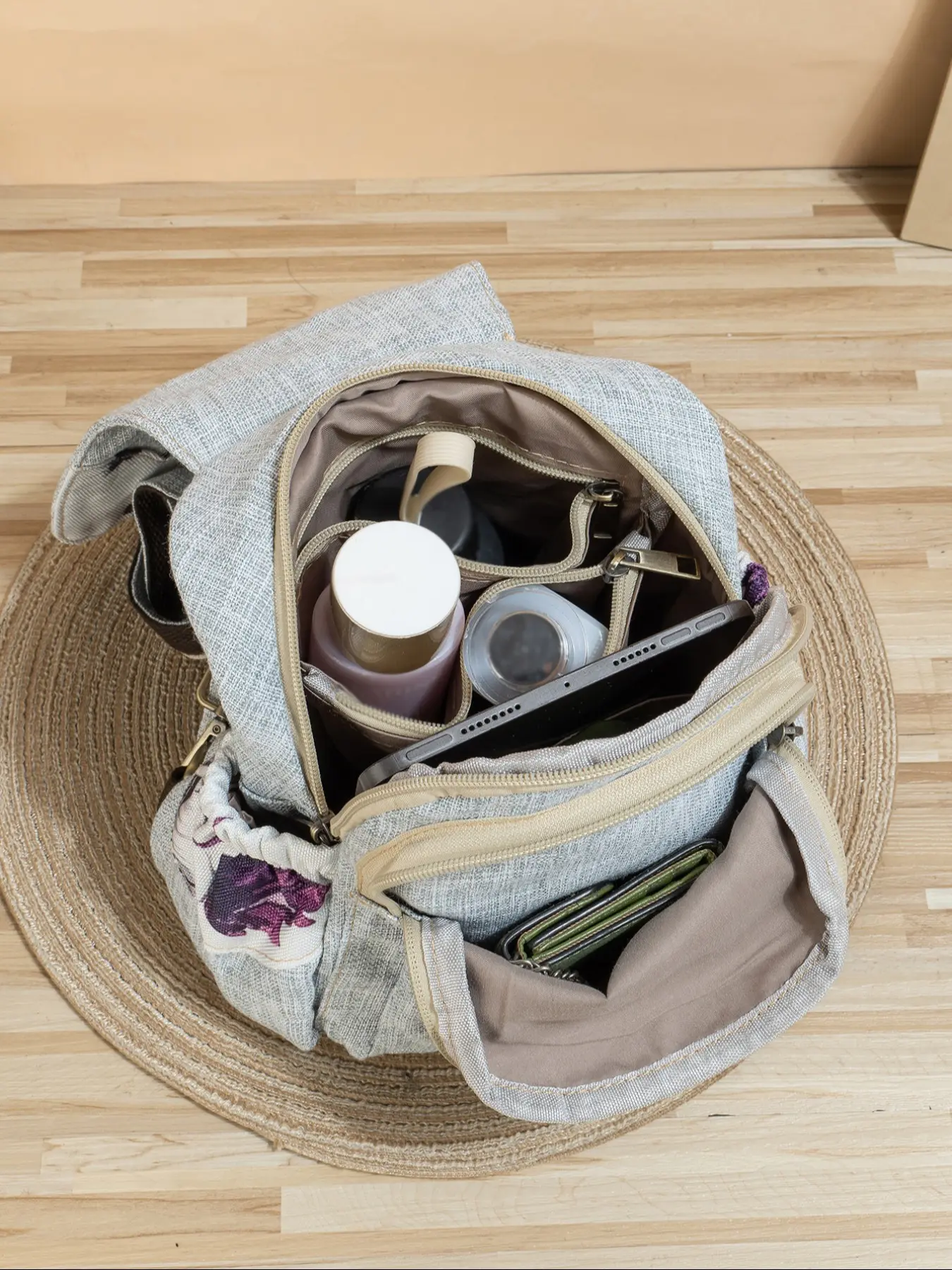 This is the cutest mini back pack ever!! Has multiple compartments, Lots of zipper compartments, beautiful decor & the hardware is stunning. I love this bag!!