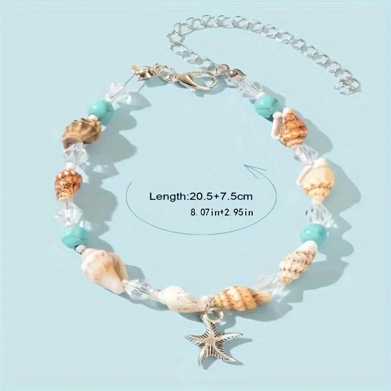 Boho Style Shell & Starfish Decor Anklet, Adjustable Braided Anklet for Women & Girls, Fashion Jewelry for Party, Daily Decor, Trendy All-match & Exquisite Jewelry for Birthday Gift