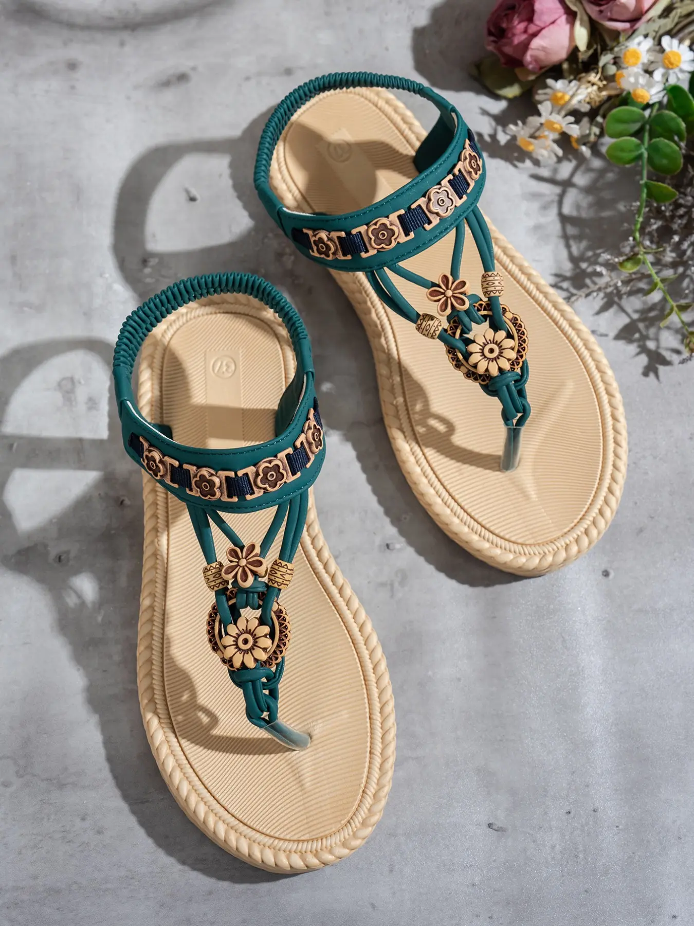 【Bohemian Charm】: Featuring ethnic patterns and bead embellishments, these sandals add a unique bohemian touch.