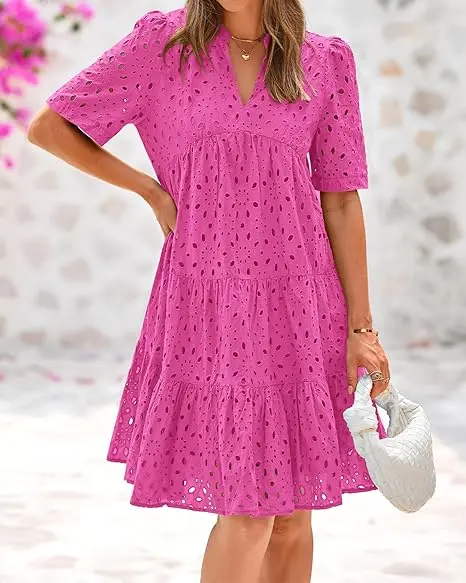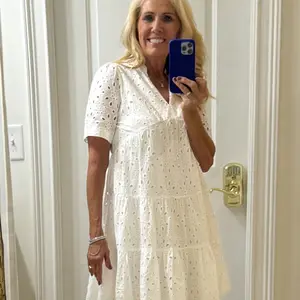 Gorgeous. Perfect summer dress. Good material, sturdy. Fits a bit larger, but I like that. It has eyeholes so you can feel very cool in summer. I got it in 3 colors - white, black and pink. Love it!